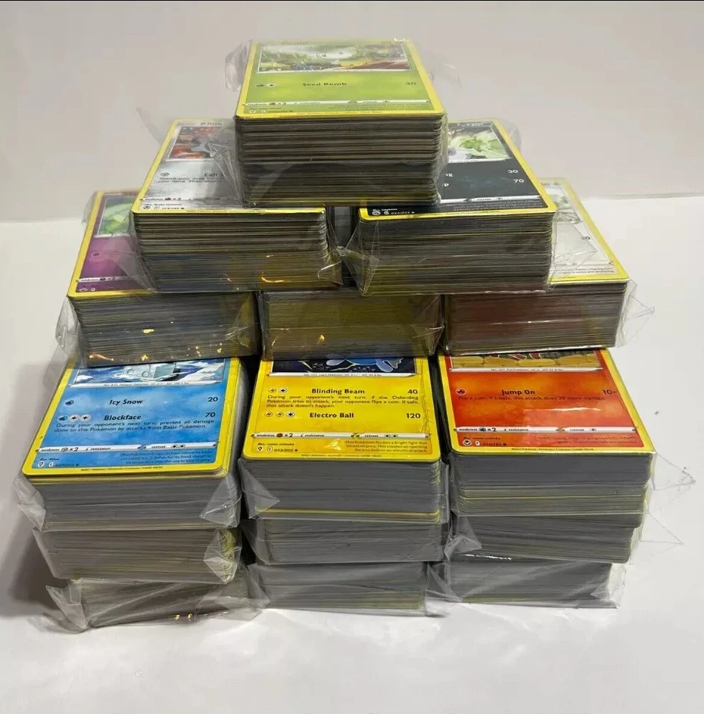 Pokemon TCG Bulk Lot - 1000+ Cards! đ„ Whatâs Included: 1000+ authentic English PokĂ©mon TCG cards A mix of Commons and Uncommon and Rares. đ Condition: Most cards are in Near Mint to Lightly Played condition Perfect for collectors, deck builders, and PokĂ©mon fans! â ïž Note: There is a chance of duplicates, but duplicates will be limited to ensure variety. â Why Choose This Lot? Great variety to expand your collection Securely packaged to ensure cards arrive in excellent condition A fun and affordable way to uncover hidden treasures! đ Fast & Free Shipping! đ Donât waitâsnag your bulk lot today and see what surprises youâll uncover! Looking for single cards? Reach out to Ed Card Co. on TCG Player for individual card orders! Gotta catch 'em all!