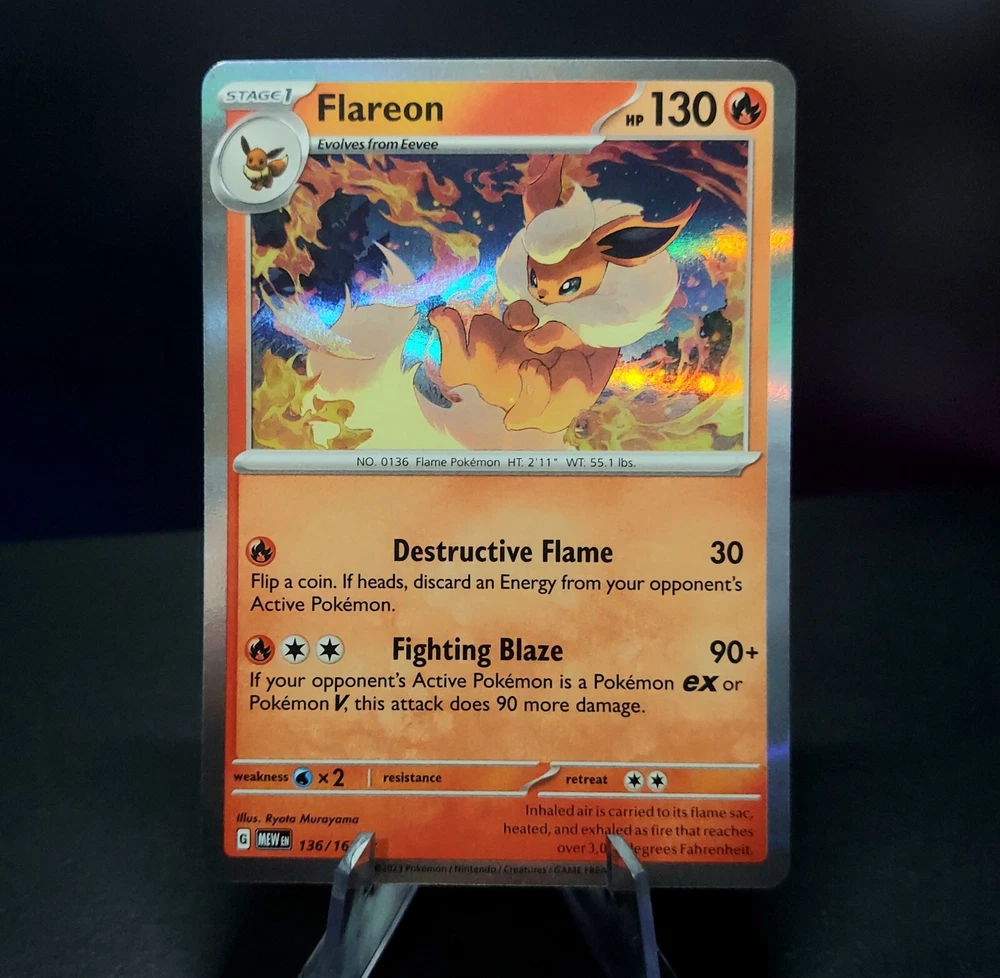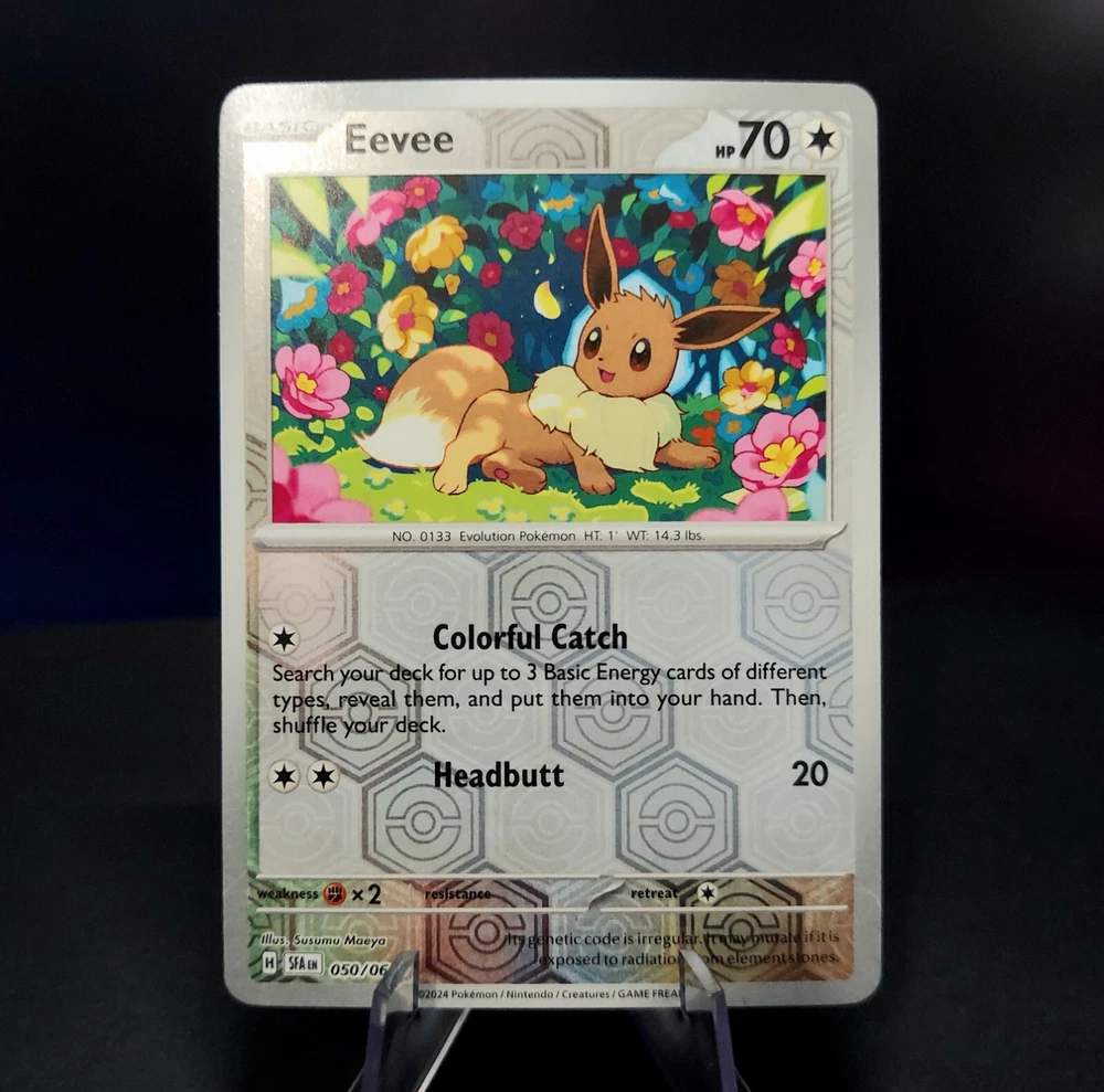 Popular among children and adults alike, this complete set features every evolution of the beloved Pokémon, Eevee! Eevee's cute charm and powerful forms make this set a great collectors item or gift for people of all ages! This set includes nine cards, all near mint or better condition, each with a holographic finish: Pokemon 151 Flareon, Vaporeon, Jolteon Holo Shrouded Fable Eevee 050/064 Reverse Holo Shrouded Fable Sylveon 022/064 Reverse Holo Obsidian Flame Umbreon 130/197 & Espeon 086/197 Reverse Holo Twilight Masquerade Leafeon 011/167 & Glaceon 054/167 Reverse Holo Thanks for considering my item! I am a collector myself and pack my cards exactly how I would want to receive them. Each card is shipped with ample padding and protection, no wiggle room allowed !