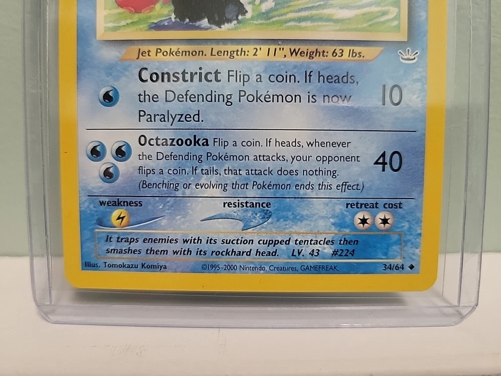 Pokemon TCG Octillery 34/64 Neo Revelation Unlimited MINT MINT condition. No scratches, no creases. Pristine edges. Mails discreetly via USPS. Card protected with penny sleeve and top loader. Free shipping.