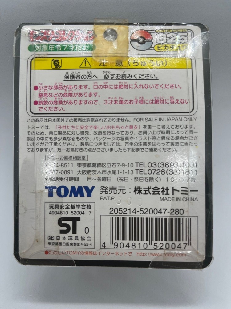 Pokemon TOMY Moncolle Pikachu Figure Sealed Black Card Vintage Rare Japan Description Thank you for viewing my listing! This is an extremely rare, factory-sealed Pikachu figure from the early TOMY Monster Collection (Moncolle) series. This is the early black card version, which is highly sought after by collectors worldwide. Unopened examples are becoming increasingly scarce. 🔹Product Details Character: Pikachu Series: Pokémon Monster Collection (Early TOMY version) Manufacturer: TOMY (pre-Takara Tomy era) Packaging: Black card / blister pack Condition: New / Factory Sealed Release Period: Approx. 1997–2000 Status: Discontinued / Out of production 🔹Why This Item Is Special Classic rounded sculpt unique to early Moncolle Iconic black card packaging with premium feel Pikachu is the most iconic Pokémon worldwide Sealed condition dramatically increases value Very limited availability on the global market 🔹Condition (IMPORTANT) Figure inside is in excellent condition due to being unopened Card and blister may show minor age-related wear (light scuffs, etc.) Please review all photos carefully before purchasing This item is intended for serious collectors. 🔹Notes Returns are not accepted to prevent item switching Colors may vary slightly due to lighting or monitor settings Item will be carefully packed for safe international shipping Please feel free to ask any questions before purchasing. Thank you for looking! Payment Payment must be made via eBay Managed Payments. Major credit/debit cards, PayPal, Apple Pay, and Google Pay are accepted. Shipping .Your Payment Details will be inserted here. Shipping The item will be shipped from Japan via international shipping (DHL / FedEx, etc.). Handling time is approximately 10business days. A tracking number will be provided. Terms of Sale No cancellations after purchase. Returns are accepted within30 days of delivery. The buyer is responsible for return shipping costs. International Buyers - Please Note: ▶ USA BuyersImport duties, taxes and charges are already included in the item price and shipping cost.You will not need to pay any additional fees upon delivery.Please purchase with confidence. The price you see is the final amount. ▶ Buyers outside USAImport duties and taxes are *not* included in the item price or shipping cost.These charges may be collected by your country’s customs office or the carrier upon delivery.Please check with your local customs authority for details before purchase. Provided by HARU