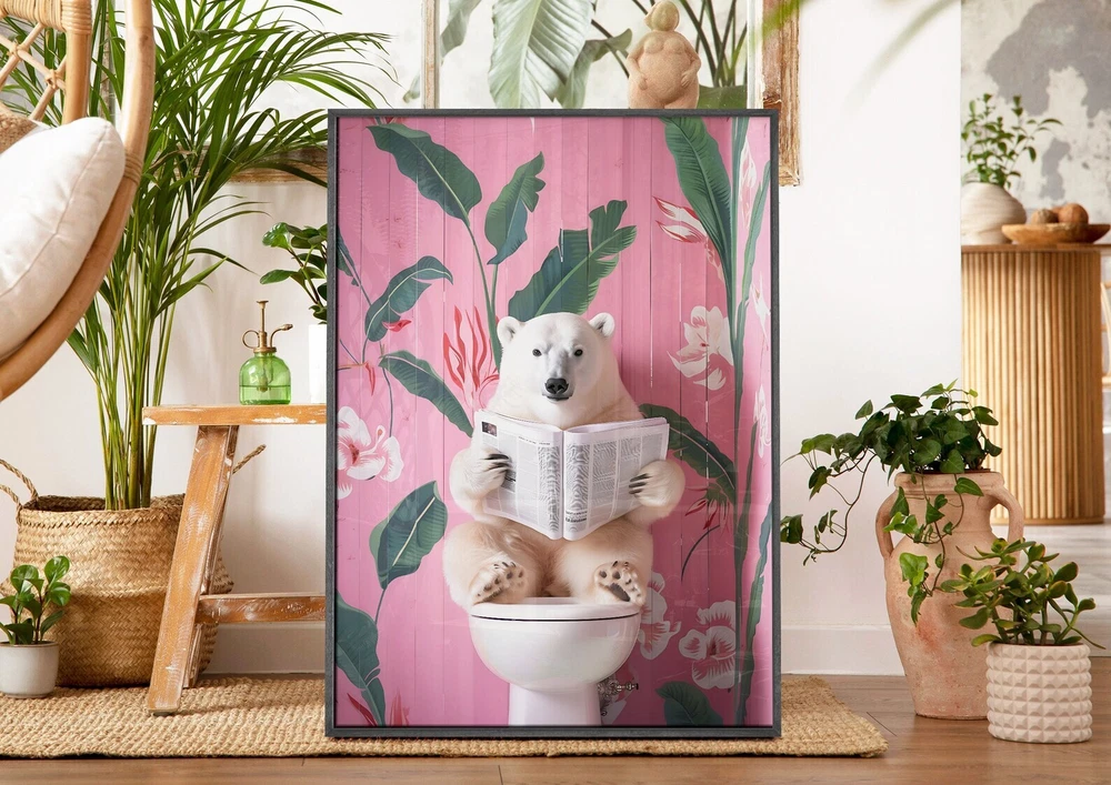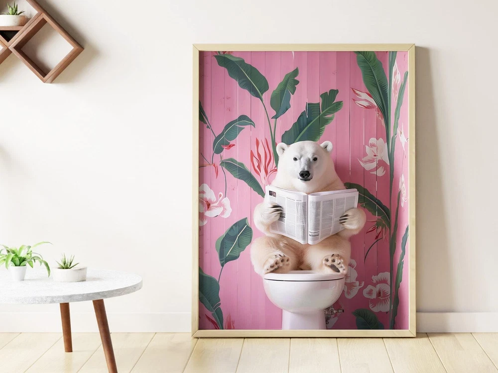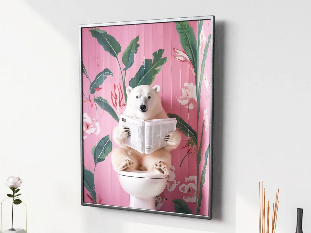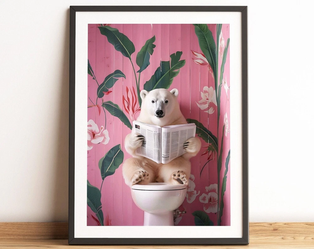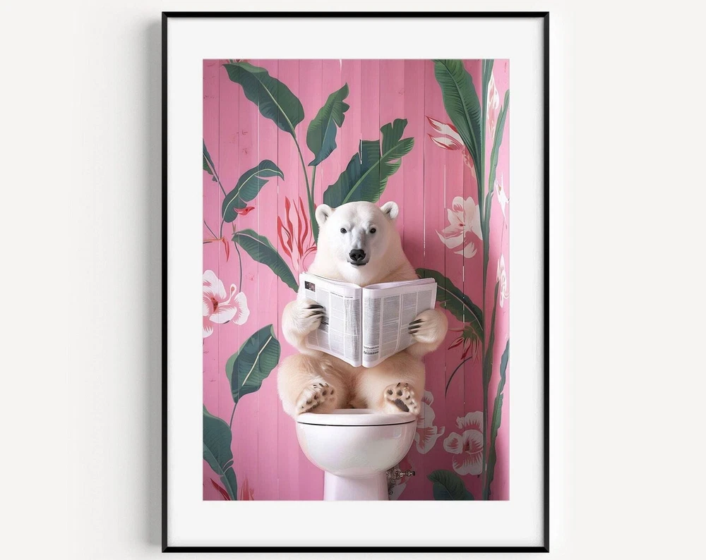 Polar Bear On Toilet Print Bathroom Prints Funny Bathroom Wall Decor Toilet Wall Art Funny Bear Poster Bathroom Wall Art Toilet Poster Material: Premium luster photo paper Print type: Inkjet printing One side printed + The finish provides the highest possible resolution and color saturation + Lasts up to 200 years in color and 400 years in black-and-white + Printed on high-quality resin-coated photo base paper medium + Posters can be hung with double-sided tape, tacks, or framed + Hand washing with a gentle cry cloth is recommended for extended durability I will hand select the best choice of paper for your chosen design to ensure top quality results for a beautiful, bright and luxurious print. All prints are sealed in cellophane slips for protection during transportation, and are shipped in a protective cardboard envelope.