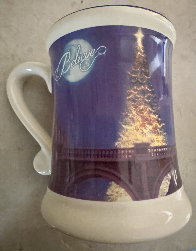 The Polar Express “All Aboard” Believe Blue 3D Raised Coffee Mug Cup Warner Bros