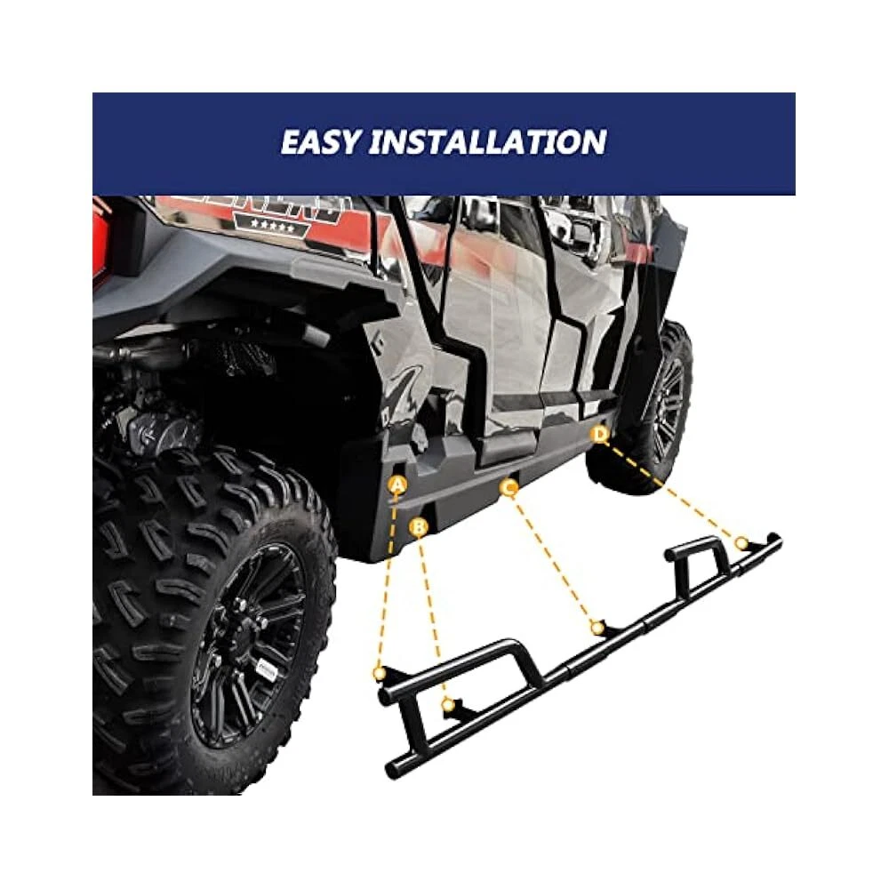 Heavy Duty Side Steps, Polaris General 4/XP 4 1000, Enhanced Vehicle Access Description Heavy-Duty Rock Sliders – Ultimate Off-Road Protection for Your Vehicle! These robust rock sliders provide exceptional protection for your vehicle's frame and body during off-road adventures. Designed for models from 2017-2024, these sliders combine the functionality of side bumpers, frame side steps, and nerf bars, offering a secure and reliable solution for challenging terrain. Built with high-strength steel, they deliver lasting durability and peace of mind, knowing your vehicle is well-protected. Enhance your off-road experience with these essential accessories, providing a safer and more confident ride for you and your family. They are a valuable addition, ensuring years of dependable service and protection on any trail. These sliders are designed as a direct replacement for part number 2881992, ensuring a straightforward installation. Invest in the safety and longevity of your vehicle with these heavy-duty rock sliders – a smart and practical choice for any outdoor enthusiast. They offer a secure stepping point, making accessing your vehicle easier and safer for the whole family. Enjoy the freedom of the outdoors with confidence, knowing your vehicle is equipped with the best possible protection. Product Features Provides exceptional protection for vehicle's frame and body. Designed for models from 2017-2024. Combines functionality of side bumpers, frame side steps, and nerf bars. Built with high-strength steel for lasting durability. Direct replacement for part number 2881992. Offers a secure stepping point for easier vehicle access. Technical Specifications Compatibility 2017-2024 Vehicle Models Material High-Strength Steel Replacement Part Number 2881992 Delivery We Do Not Ship Outside of the Continental US. Return Policy All items qualify for returns within 30 days of receipt. Buyer is responsible for return shipping on any item that is not damaged. Feedback We take our reputation seriously, we buy and sell online, so we understand the value of trust. If you are unsatisfied with your order, please contact us and we will work with you to resolve it to your satisfaction.