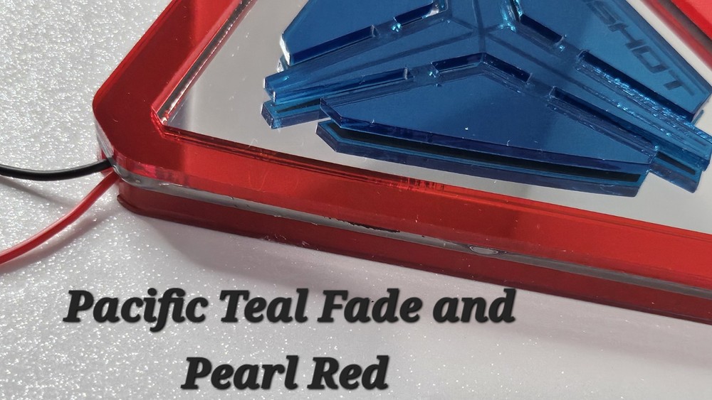 LED Hood emblem for the Polaris Slingshot. Pacific teal fade and Pearl Red All Metallic materials with Forever Light technology. 6500k LED super bright Easy Install 12v red black wires Comes Backed with 3M adhesive Low Profile only 3/8 inch thick 1 year warranty My company is SlingtoySS we are a professional Acrylic and wrap company that specializes in mods and custom products for the Polaris Slingshot.