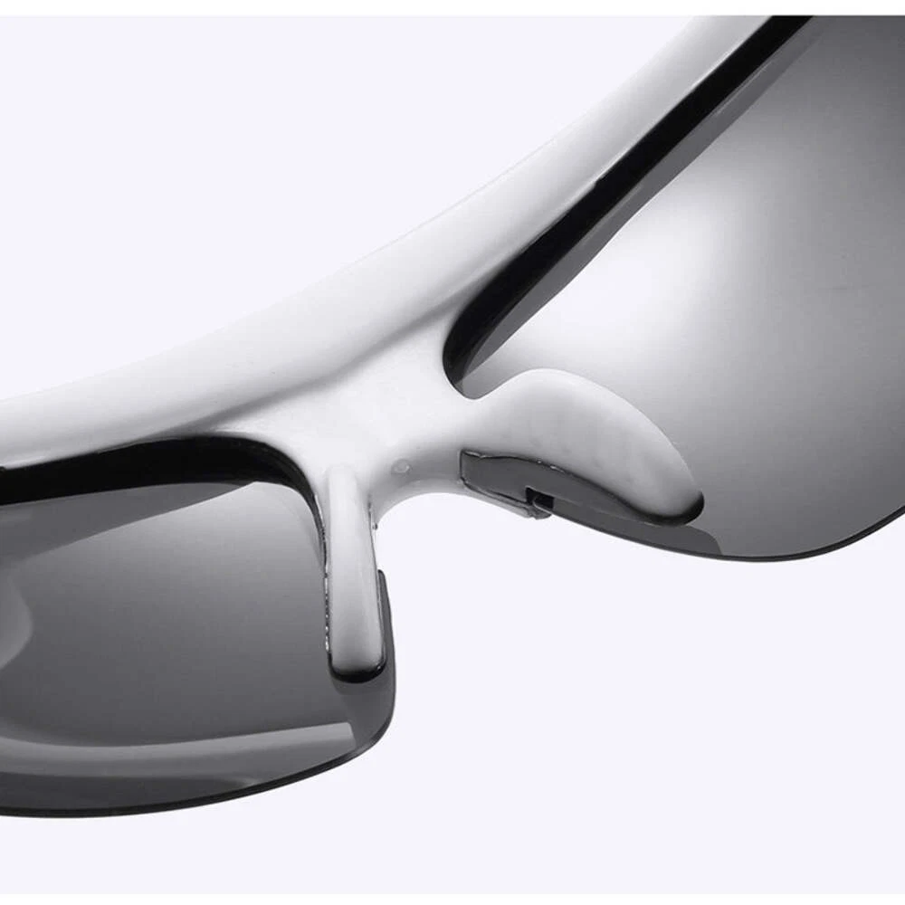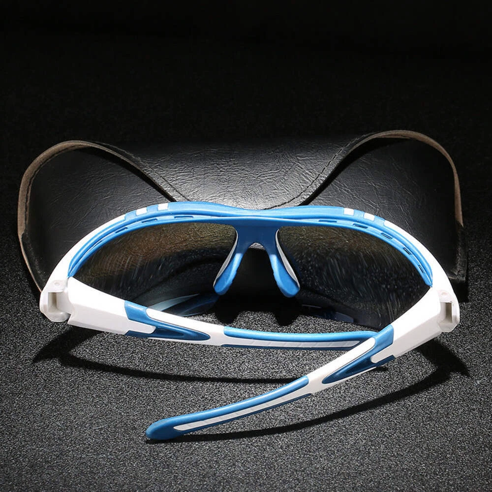 Product information: Lens material: TAC Frame material: PC Lens color: blue frame blue mercury #1, green frame green mercury #2, red frame red mercury #3, orange frame gold mercury #4, white frame black gray film #5 Whether it is polarized: Yes Glasses structure: frame Anti-UV grade: UV400 Style: Sports Visible light perspective rate: 99.9 Style: Universal Strength: strong Lens material: Resin polarized light Size information: Packing list : Sunglasses*1