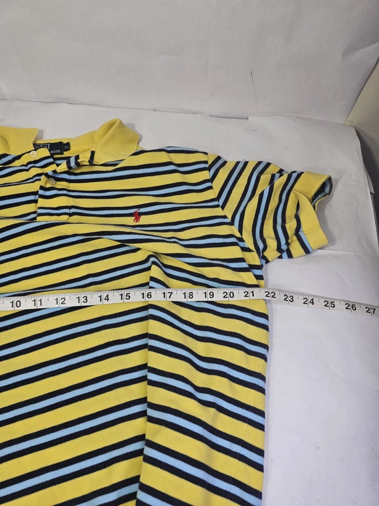 Polo By Ralph Lauren Mens XL Yellow Blue Short Sleeve Polo Golf Shirt. Shirt has been washed and cleaned.