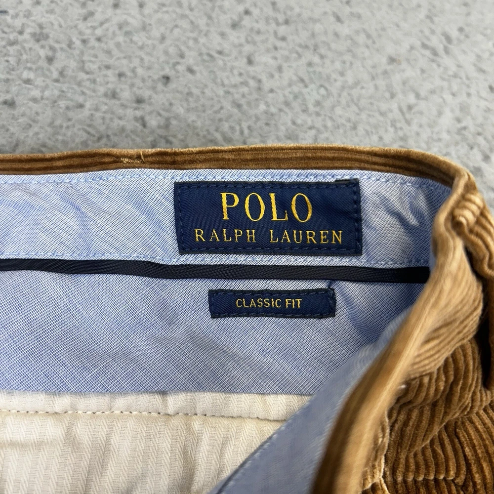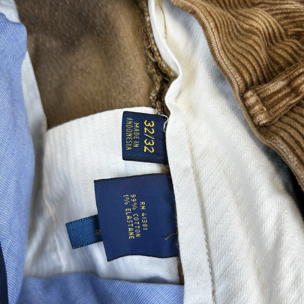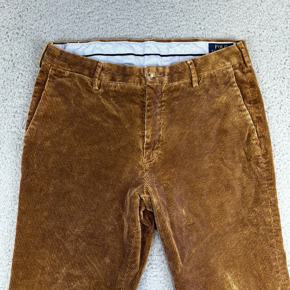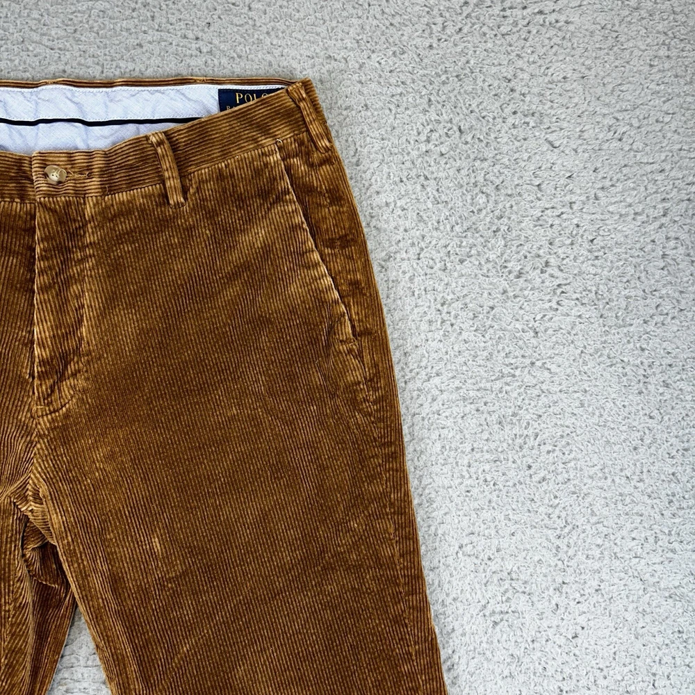 Season: Fall, Spring, Winter Waist Size: 32 in Closure: Zip Fabric Type: Corduroy Inseam: 30 in Handmade: No Leg Style: Straight Material: Cotton Blend Style: Dress Pants Vintage: No Personalize: No Department: Men Country/Region of Manufacture: Indonesia Features: Comfort, Easy Care Fit: Classic Size Type: Regular Pattern: Solid Brand: Polo Ralph Lauren Model: Na Size: 32 Type: Pants Rise: Mid (10-12 in) Color: Brown Theme: Preppy Pocket Type: Slash Pocket Occasion: Business, Casual