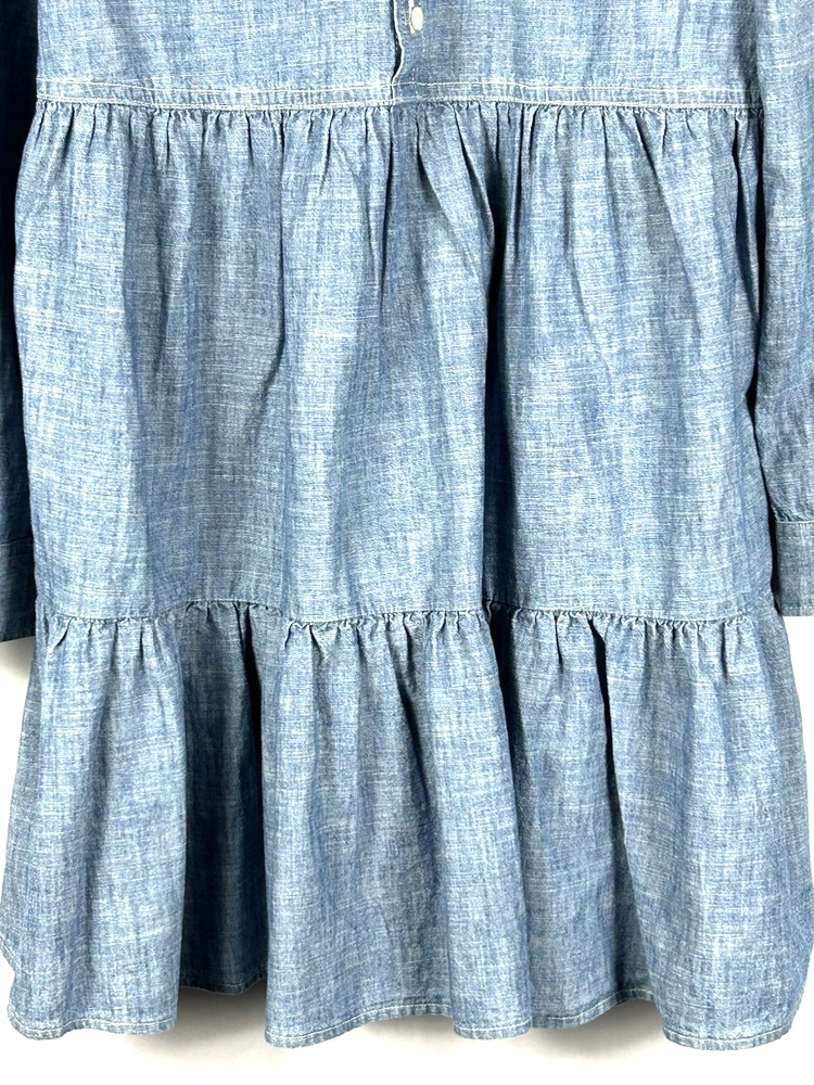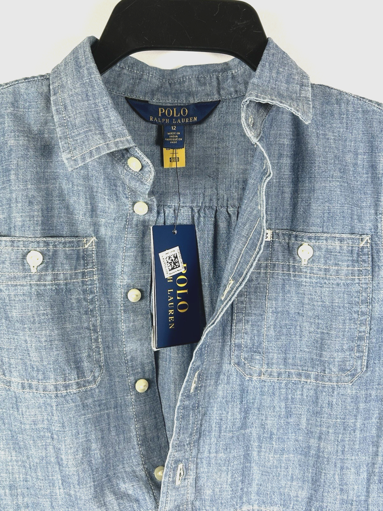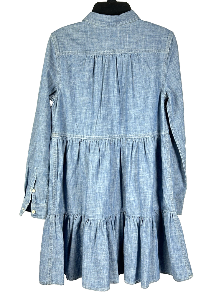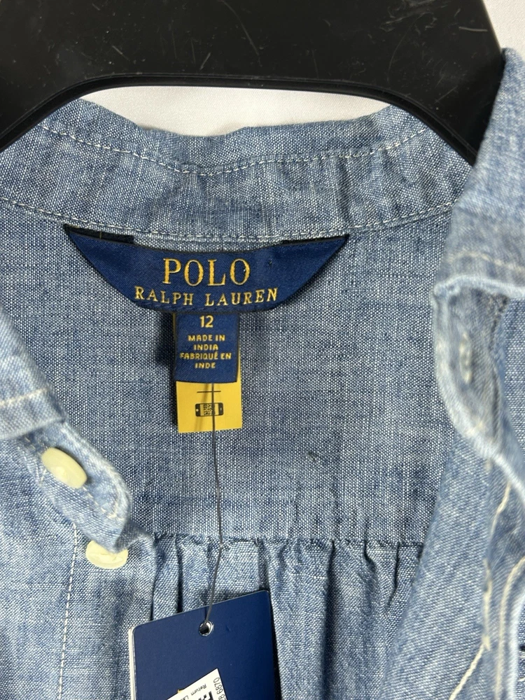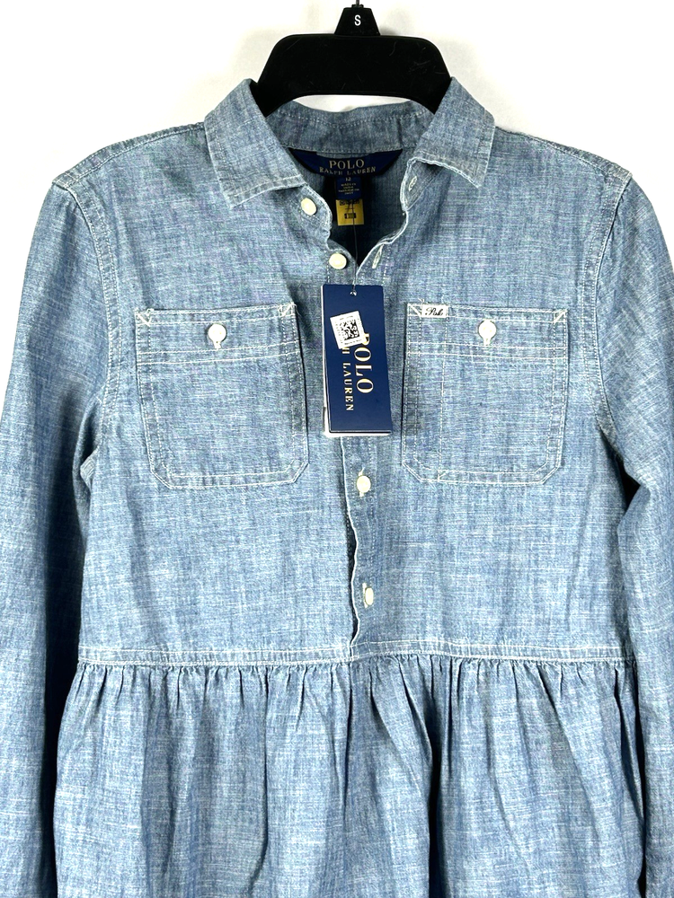 Polo Ralph Lauren Girls Chambray Shirt Dress New with tags Size 12 Chest: 15"(30) Length: 29" Blue Dye Indigo Long sleeve Tiered Ruffles Button Front pull over Collared 100% cotton New Nice for Christmas and holiday photos