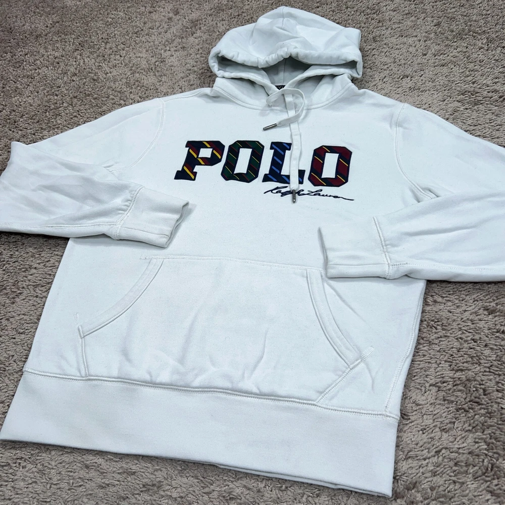Polo Ralph Lauren Hoodie Mens Small White Striped Script Logo Fleece Pony Logo Condition: - There is some wash wear. - Overall in good used condition. - No holes or stains. - Nice logo. Size: - Mens small. Measurements: - Previous washings may change the sizing written on the tag. - Please refer to the photos above for all measurements. - Please compare our measurements to that of one of your favorite garments. - Please note, item measurements are approximate . All items are bagged and sealed after being photographed, then stored in a smoke free environment to ensure the item is exactly the same as when photographed. I carefully package and ship daily. Feel free to contact me with any questions. All items have been washed per eBay standards & policies.