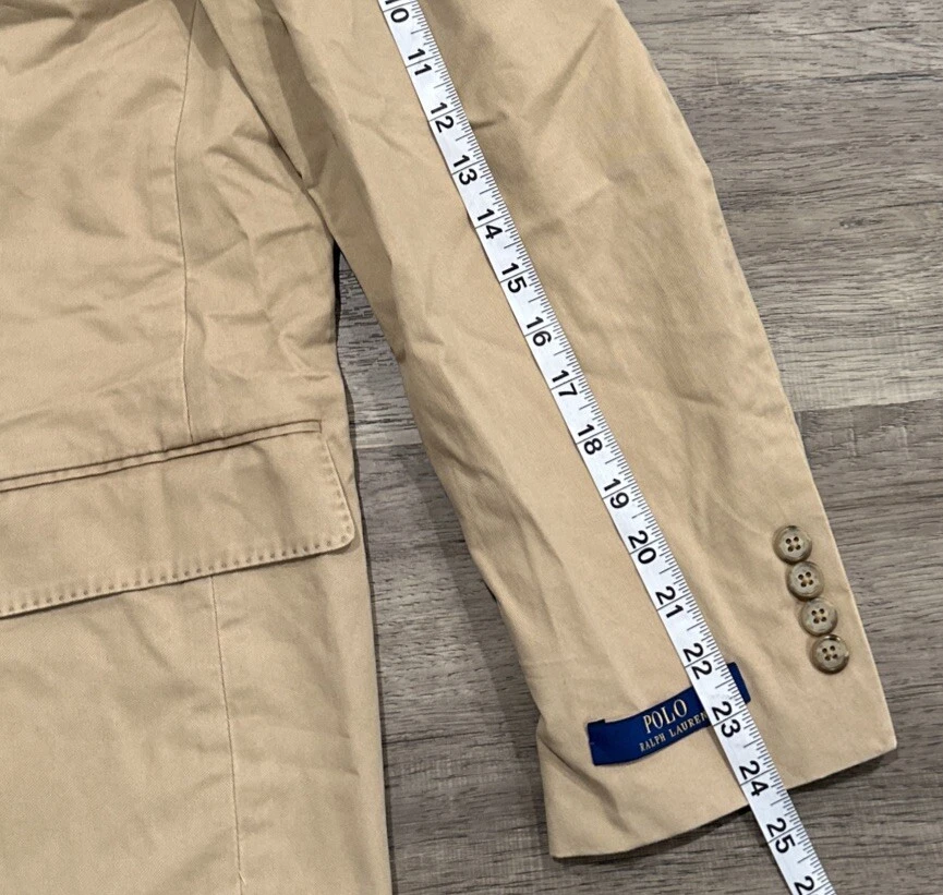 This Polo Ralph Lauren jacket is a versatile piece that can be worn for a variety of occasions. The jacket is a modern stretch chino blazer in khaki, with a solid pattern and a beige color. It features a notch lapel style, a single-breasted cut, and a two-button front button style. The jacket has a regular fit and is available in size 46R. The jacket is perfect for parties, cocktails, business events, and formal occasions. It is made of high-quality materials and is designed to last. The jacket is easy to care for and should be dry cleaned only. This Polo Ralph Lauren jacket is a classic and modern piece that will make you look sharp and stylish.