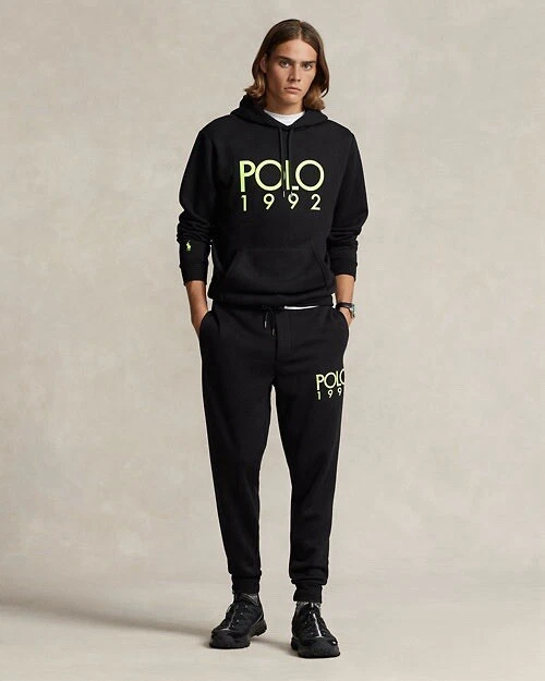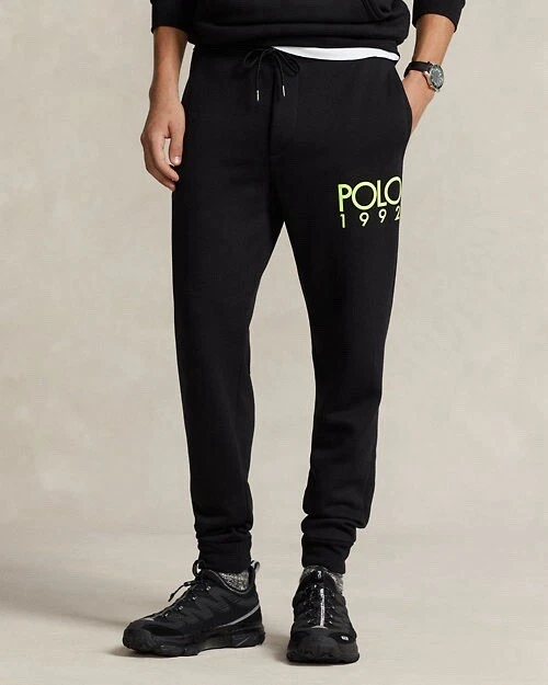 In heavyweight fleece, these jogger pants feature a vintage-inspired logo as well as our signature embroidered Pony. DETAILS All sizes have a 29.25" inseam. Size medium has a 32.5" waist that expands to 40" and a 12" rise. Ribbed drawstring waistband. Sewn fly. Side on-seam pockets. Back right patch pocket. Flocked “Polo 1992” print at the left leg. Ribbed cuffs. Signature embroidered Pony at the back pocket. Shell: 65% polyester, 35% viscose. Ribbed trim: 64% polyester, 32% viscose, 4% elastane. Machine washable. Imported. Model is 6'1" (185 cm) and wears a size medium. Style Number: 656871