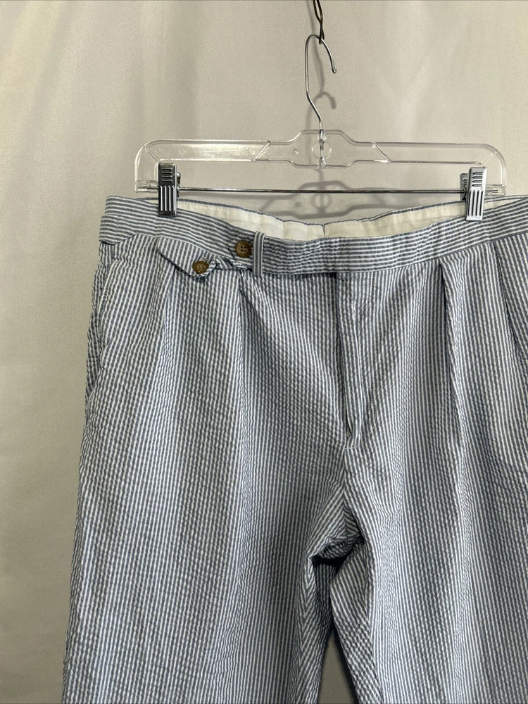 Polo Ralph Lauren Men's Blue White Stripe Seersucker Pants Straight Fit Sz 36x33