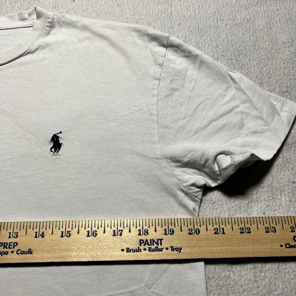 The Polo Ralph Lauren Men’s T-Shirt in size small features a classic white crewneck design with an embroidered pony logo accent. Made from a comfortable cotton blend material, this regular fit tee is perfect for casual, classic, or preppy style for all seasons. With its easy care and breathable features, this short sleeve t-shirt is a versatile and stylish addition to any man's wardrobe.