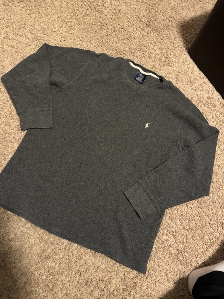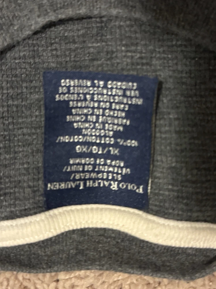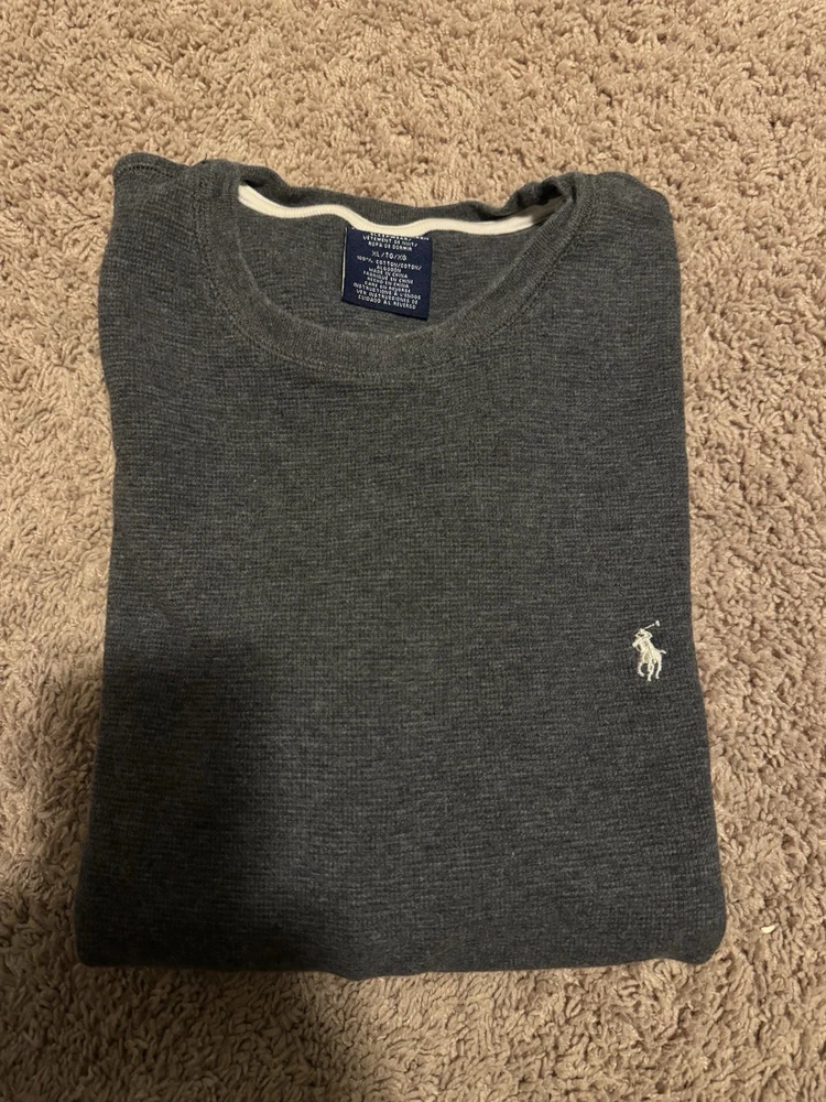 Polo Ralph Lauren Long Sleeve Waffle Knit Thermal Shirt (Gray) Men's XL The Polo Ralph Lauren Men’s Long Sleeve Waffle Knit Thermal Sleepwear Shirt in gray is a stylish and comfortable choice for men looking for a high-quality sleepshirt. Made from 100% cotton with a waffle-knit fabric type, this pullover shirt features an embroidered white pony emblem, adding a touch of luxury to the design. The crew neck and long sleeves make it perfect for colder weather, while the lightweight material ensures a comfortable fit year-round. Ideal for the winter, summer, fall, or spring seasons, this designer sleepshirt is a must-have for any man's wardrobe. Size: XL Color: Gray w/ white pony logo Design: Polo Ralph Lauren Sleepwear Waffle Knit Thermal Shirt Neckline: Crew neck Sleeves: Long Sleeve Materials: 100% Cotton
