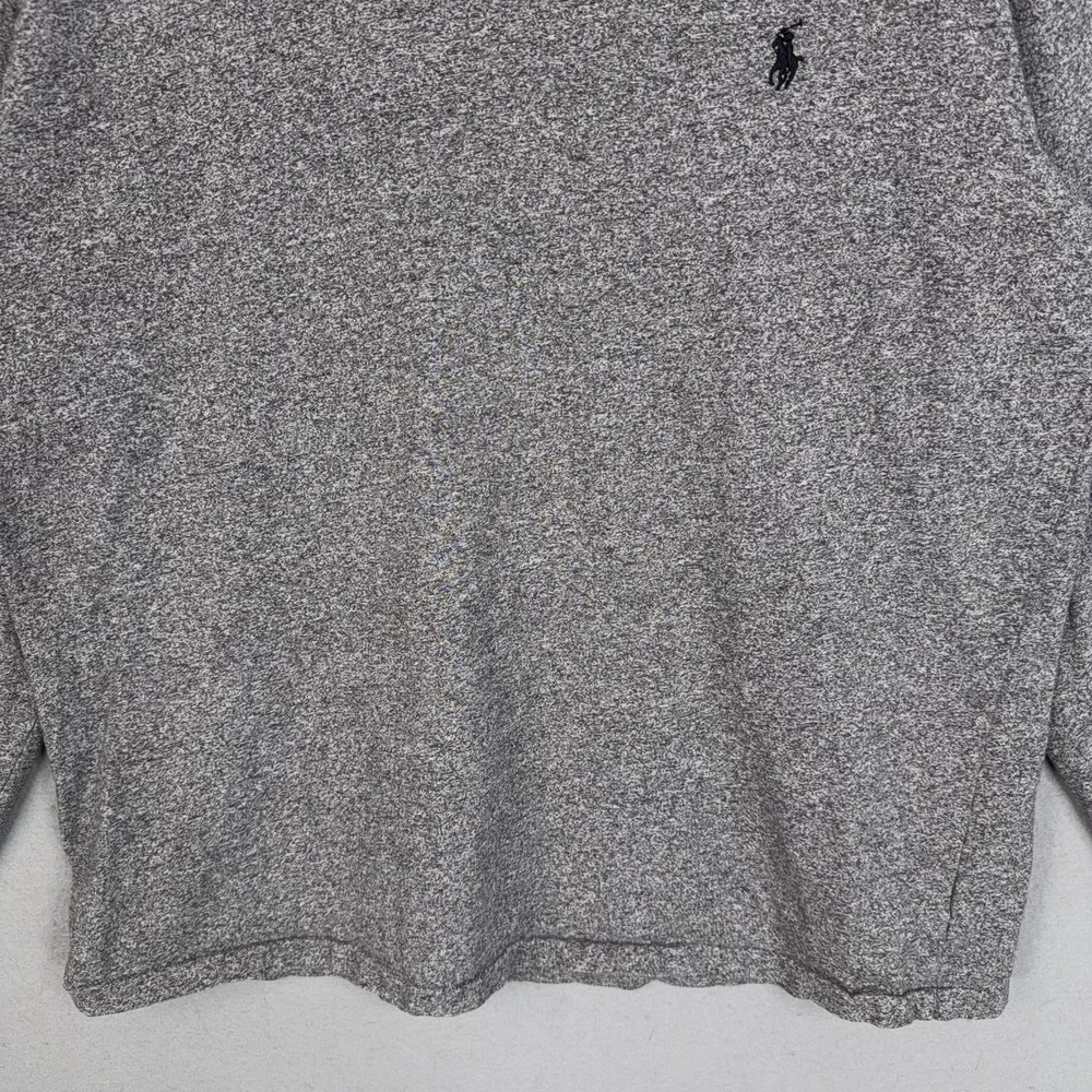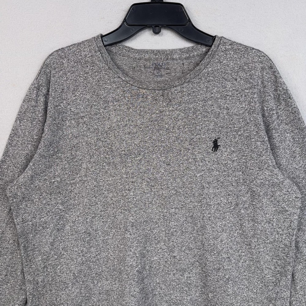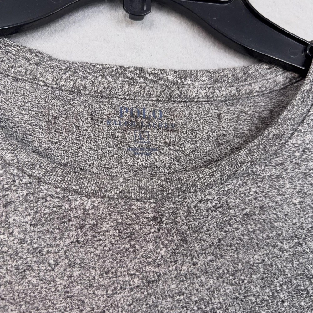 Polo Ralph Lauren Shirt Mens Large Gray Pony Logo Tee Casual Classic Preppy Pre-owned Polo Ralph Lauren long sleeve cotton shirt with light overall wash wear from normal use. Fabric, seams, cuffs, and neckband are clean and intact with no holes, stains, or damage, and the embroidered chest logo remains sharp and fully attached. Brand: Polo Ralph Lauren. Style: Mens long sleeve crewneck T-shirt with casual knit jersey construction. Color: Heather gray body with tonal stitching and contrast dark embroidered chest logo. Size: Mens Large (L) per printed interior neck label. Material: 100% cotton per interior content tag. Details: Classic straight hem silhouette with long sleeves, ribbed crew neckline, and banded cuffs. Features: Soft midweight cotton knit, tagless printed neck label for added comfort, and versatile solid heathered design suitable for layering. Branding and logos: Small embroidered Polo Ralph Lauren pony logo at the left chest with printed Polo Ralph Lauren branding at the interior neck. Identifiers: RN 41381 printed on the interior care label. Intended use: Everyday casual long sleeve tee ideal for cool-weather layering, loungewear, or relaxed weekend outfits in fall and winter. Special notes: Timeless minimalist Polo basic that pairs easily with jeans, chinos, or joggers. 25047 Measurements: Previous washings may change sizing on the tag. Refer to photos above for all measurements. Compare our measurements to one of your favorite garments. Measurements are approximate. All items are bagged and sealed after being photographed, then stored in a smoke free environment. Washed per eBay standards. I carefully package and ship daily. Contact me with any questions. Thanks