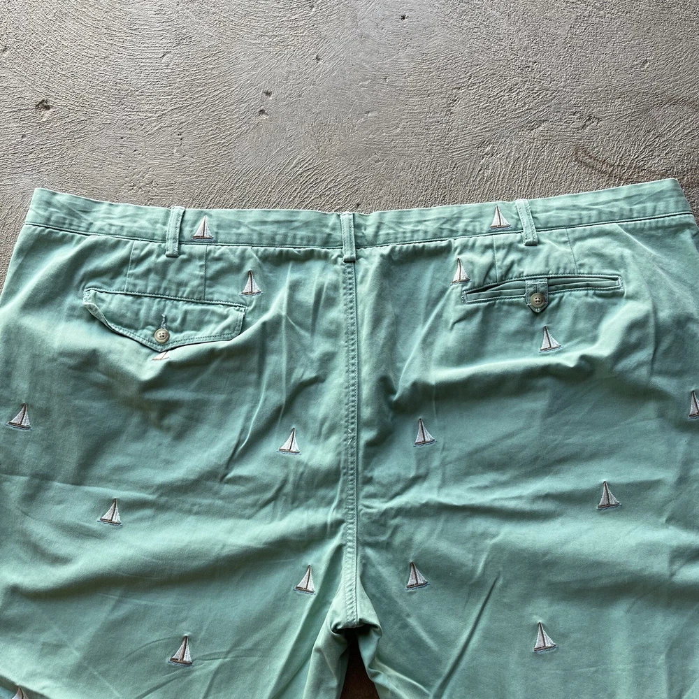 Polo Ralph Lauren Shorts Mens 54 Big Green Chino Sail Boat Outdoor Beach Preppy