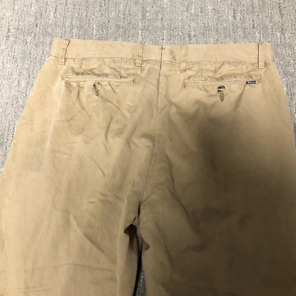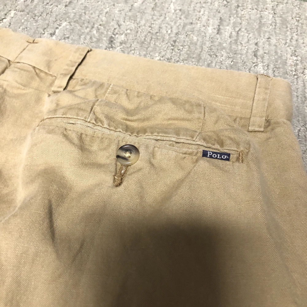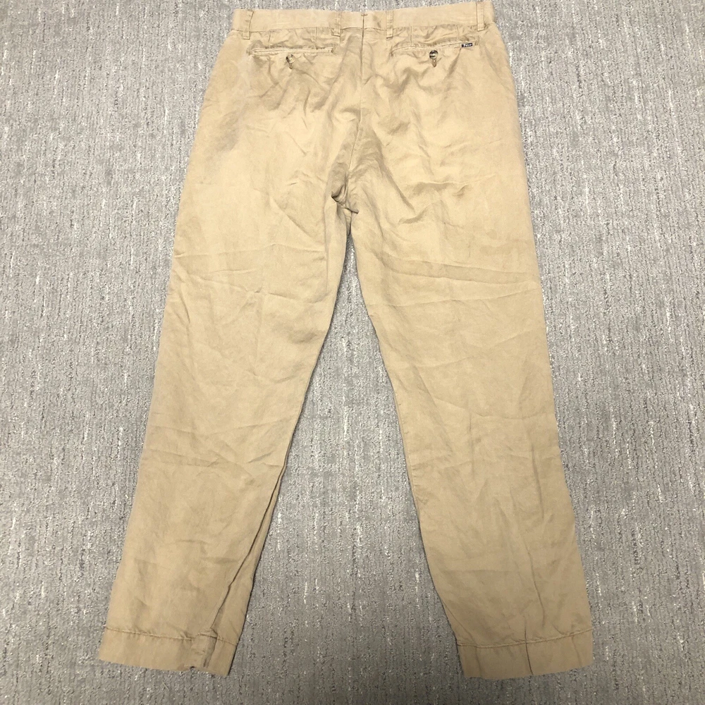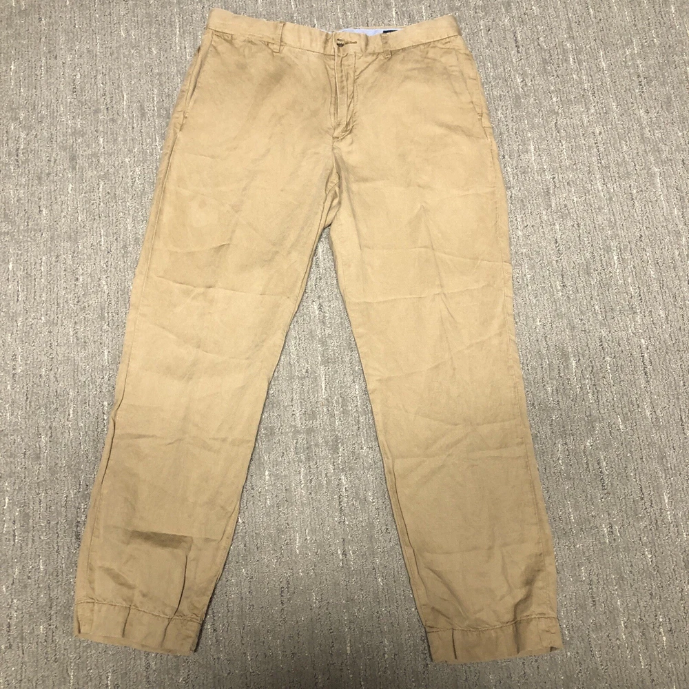Polo Ralph Lauren Straight Fit Linen Pants Men’s Size 33x30 Khaki Preppy Trouser Preowned Good condition Material and make tag was cut. No other major flaws Measurements in pictures Please see pics and ask questions before purchasing Thanks!