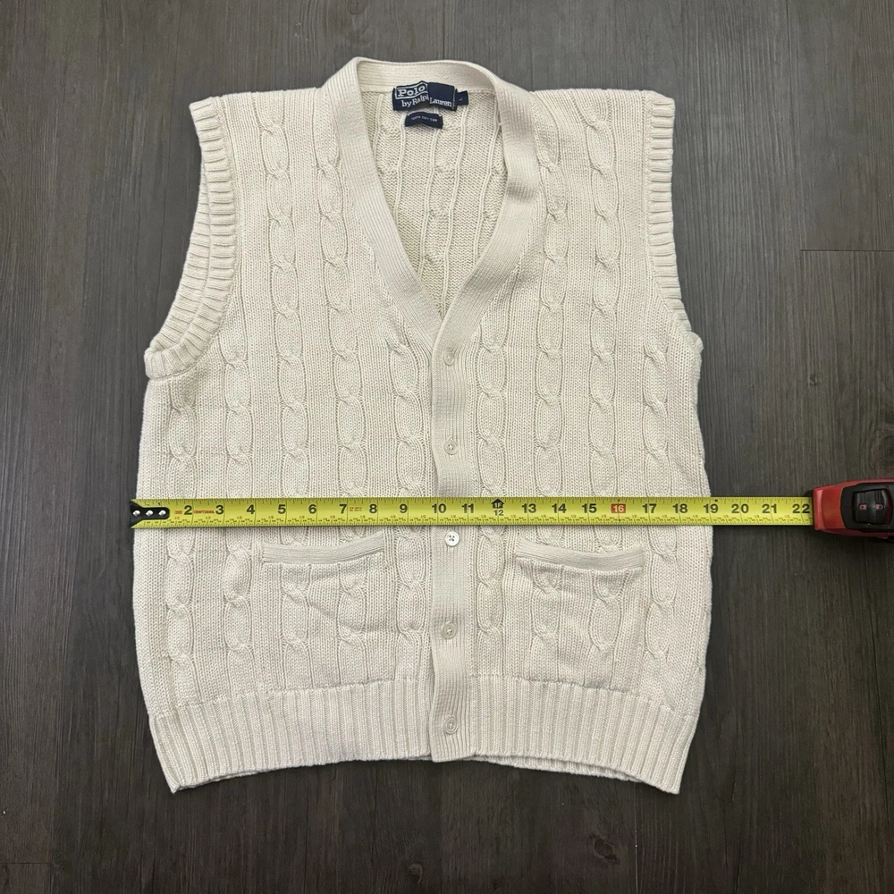 HomePolo Ralph Lauren Sweater Vest Button Up Cream Adult Size L Cable Knit