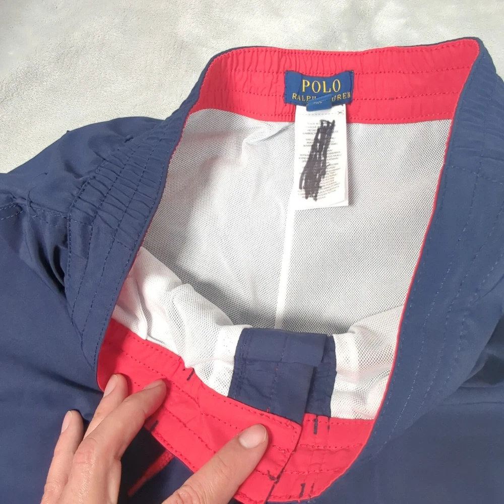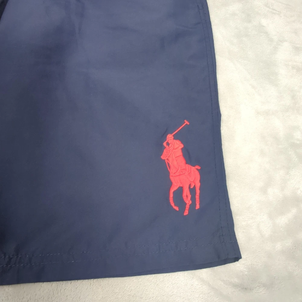Get ready for a day at the beach with these Polo Ralph Lauren shorts for boys. The blue color and solid pattern make them a classic choice for any young wave rider. These board shorts are made of lightweight and breathable polyester material, ensuring a comfortable fit for any activity, whether it's surfing or just playing in the waves. Description may be generated by AI. · Ships within 24 hours · Free 30 Day Returns · Contact us via message for prompt resolution with any issue