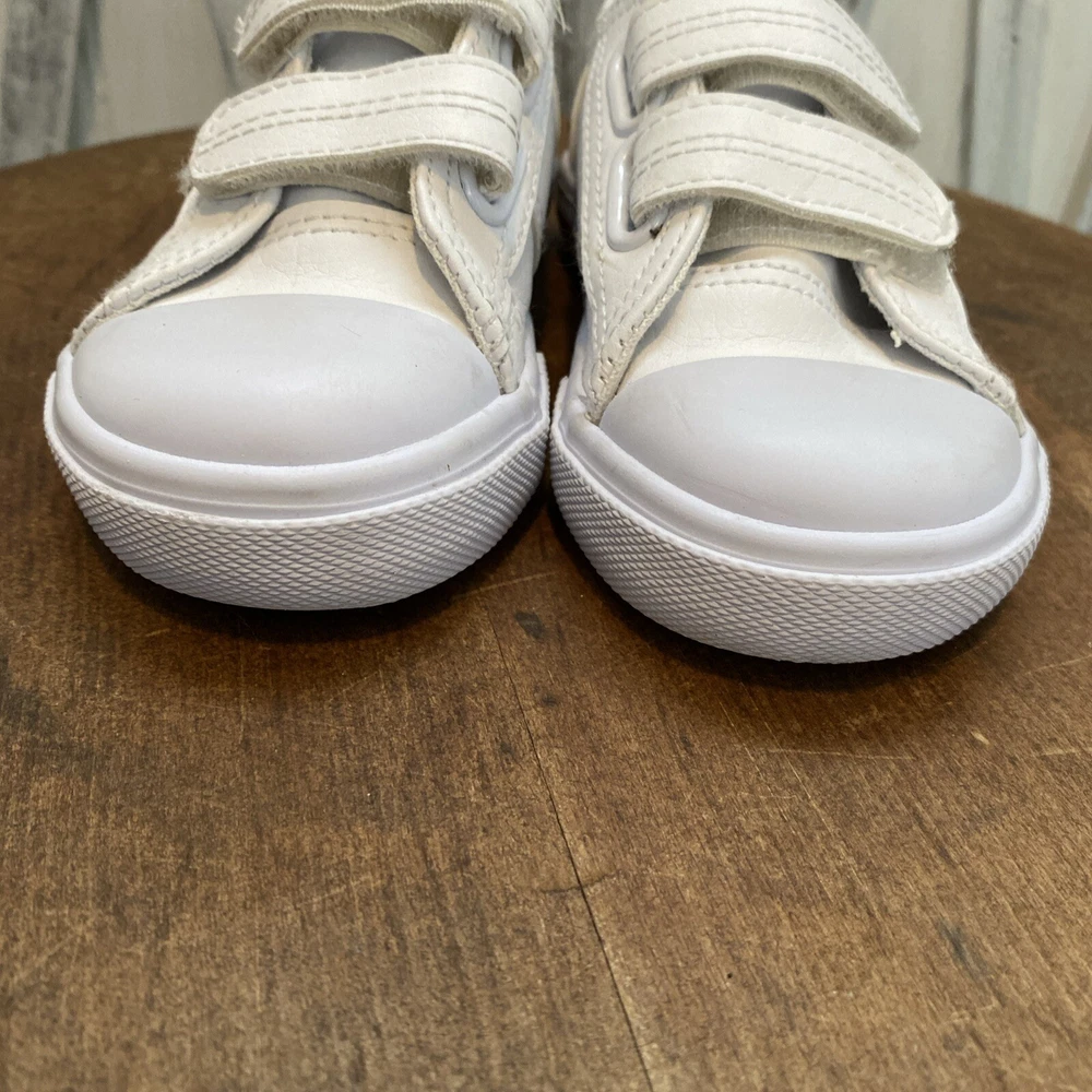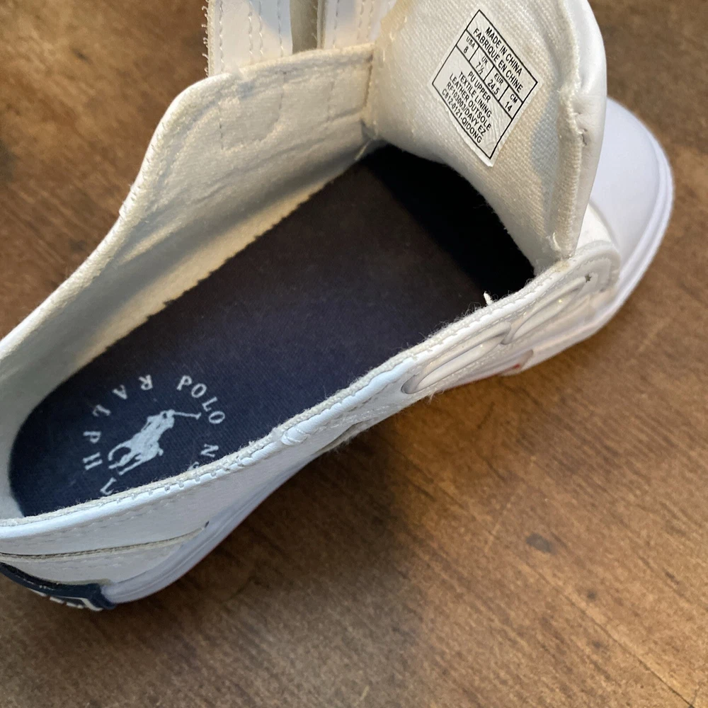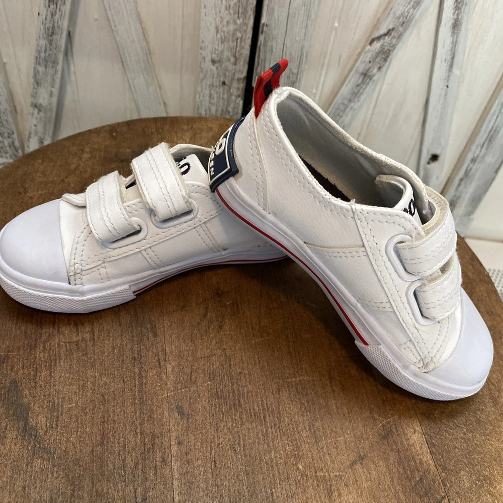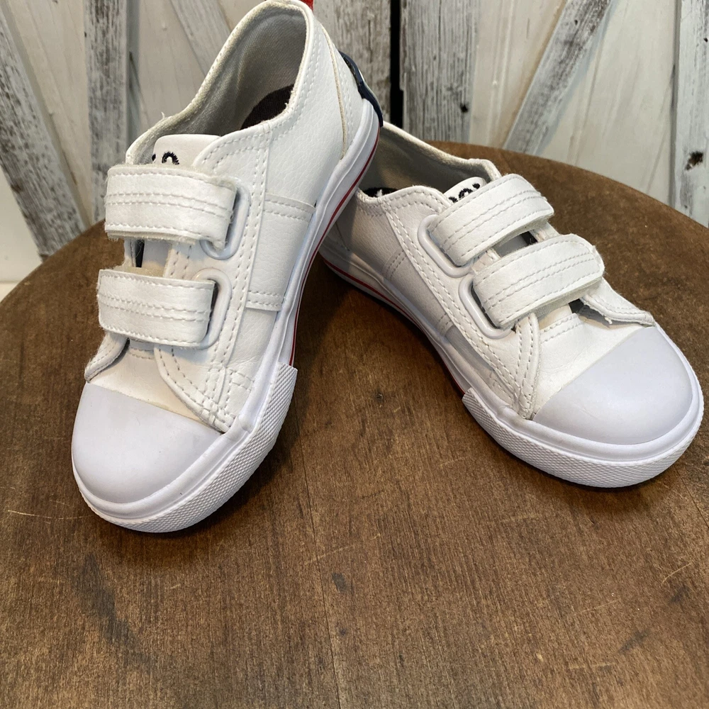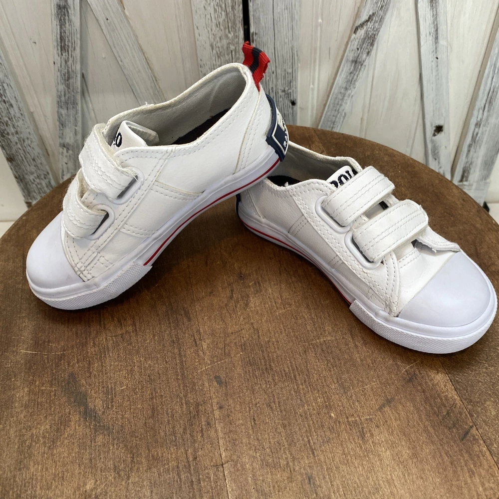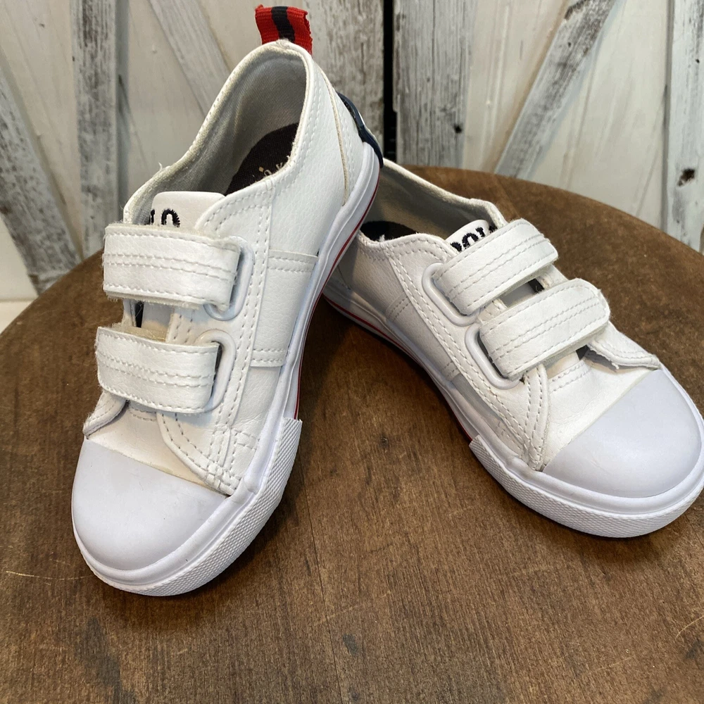 These white toddler size 8 sneakers for children with easy closure by Polo Ralph Lauren, (the iconic polo player on a horse is embroidered on the side of the shoe.) The shoes are in PRiSTINE condition, as they were worn ONCE. Please review all photos, feel free to reach out with any questions or for additional information or photos. Thank you for your interest..