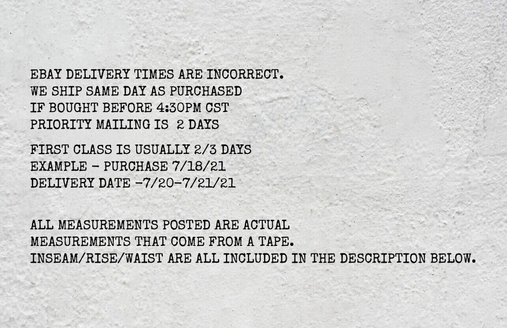 These jeans fit perfectly! They are even a perfect length, which for me is a huge plus. They kept me informed as to the process and even came in earlier than expected. Packaging was solid. Jeans were as described and a great price.