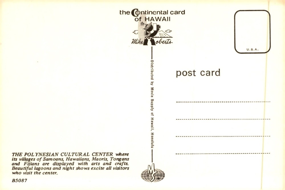 Polynesian Cultural Center, Hawaii - 1960s Postcard