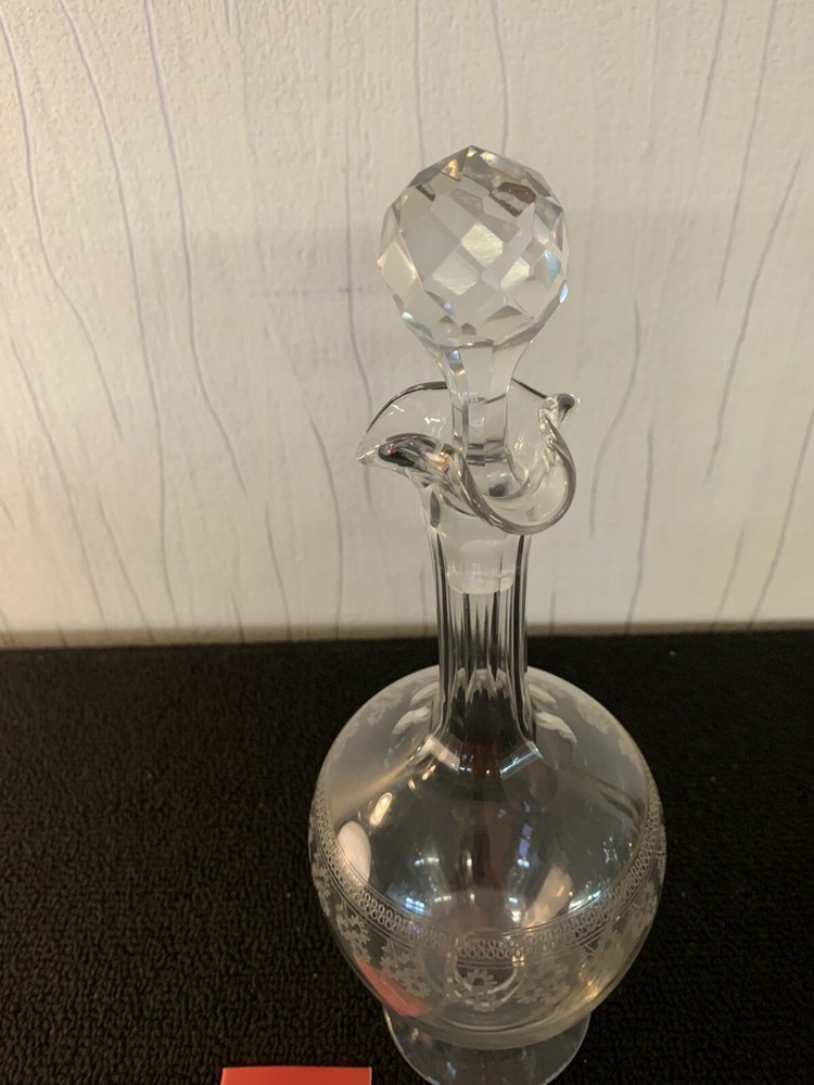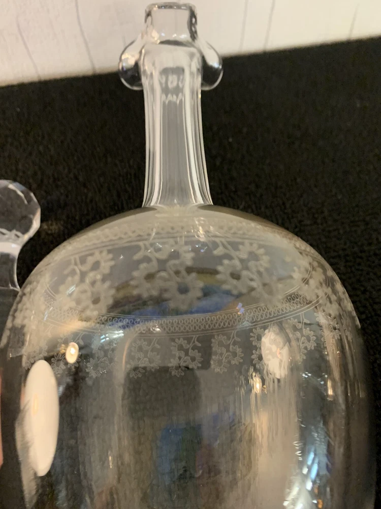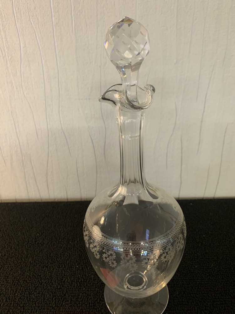 2 Engraved Crystal Carafes Daisy (Price of the Lot)