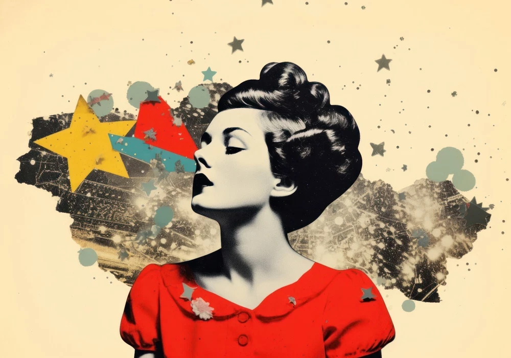 Pop Art Retro Portrait Abstract Collage Illustration 7x5 Wall Decor Print
