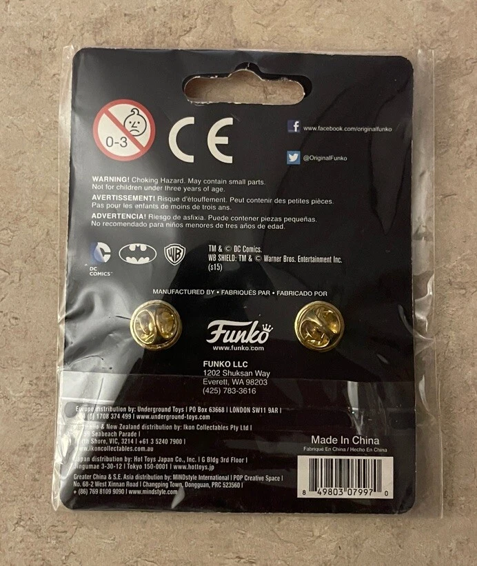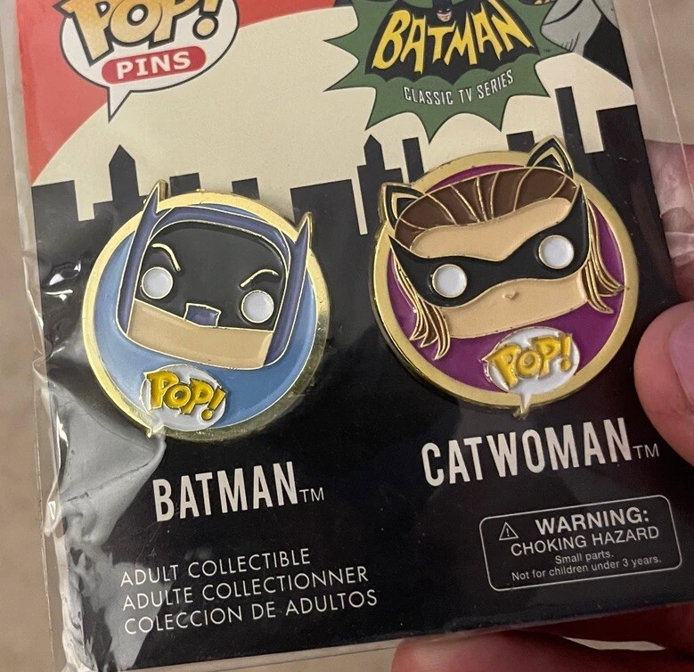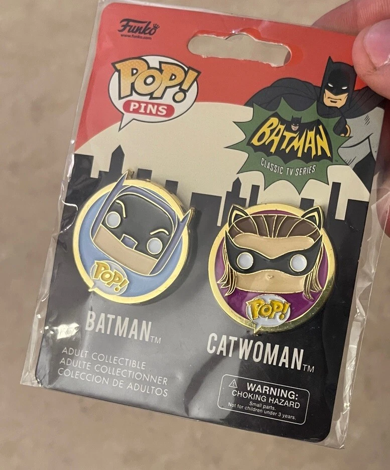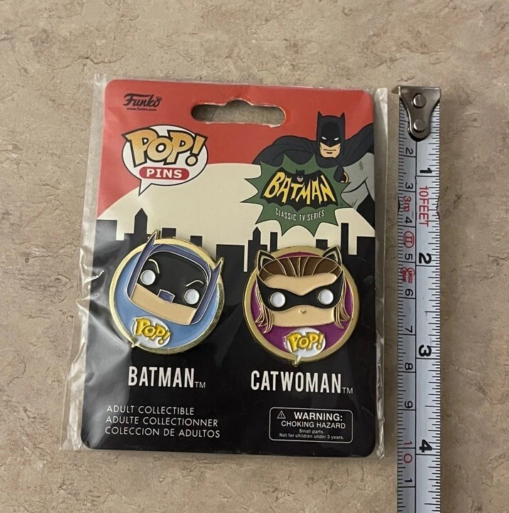 This product is a set of two collectible pins featuring Batman and Catwoman from DC Comics. Produced by Funko, the pins are part of the Pop! Pins series and are made of metal. The pins are standard size and come in original packaging. They are not autographed or vintage, and are suitable for ages 3 and up. The pins are part of the DC Universe franchise and feature characters from the Warner Bros. Animation movie "The Batman". They are common and not customized. These pins are in new unused condition, please see ALL photos for a better idea on condition and any details to the pins.