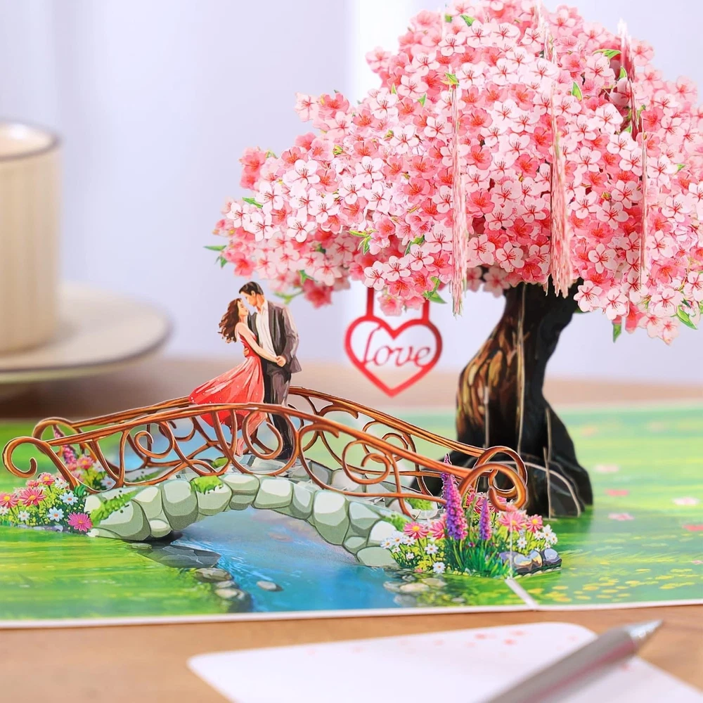 Store New Arrivals Add to Favorite View Feedback Contact Pop Up Wedding Anniversary Card Cherry Blossom, 3D Bridge with Couple Birthday Cards for Wife, Her, Product Description Elegant Design: Features a stunning cherry blossom tree in full bloom, handcrafted with delicate pink petals and detailed artistry. A red “Love” heart hangs beneath the blossoms, creating a beautiful and romantic focal point. A Heartfelt Surprise: Opens to reveal a loving couple embracing on a charming arched bridge, forming a memorable 3D scene that captures the magic of romance and togetherness. Emotional Expression: This Cherry blossom card includes a removable note tag for writing your warm wishes. Add a personal touch to your gift-giving experience by including a heartfelt message inside the card. Express your love, gratitude, and best wishes to the recipient on their special day. Perfect for Loved Ones: Ideal for husbands, wives, boyfriends, girlfriends, and couples. Perfect for Valentine’s Day, weddings, anniversaries, or couple’s birthdays—an elegant way to celebrate love. Included: Package Contents 1 Pop-up Card(6x8 inches) +1 Envelope +1 Note tag. If you are looking for a unique and memorable gift, then this 3D pop-up greeting card is the perfect choice. Specification Number of Items 1 Item Dimensions L x W 8"L x 6"W Size 6 x 8 inches Item Weight 0.06 Kilograms Style Color Pink Cherry Theme Cherry Blossom Product Style Cherry Blossom Bridge couple Pattern Floral ABOUT US We offer the best prices around on high quality products. Our E-store includes media such as books, movies, music and games while offering electronics, toys, sporting apparel, clothing, tools, general home, garden items and more. SHIPPING We are always working hard to ensure your package arrives as soon as possible. Please understand that some factors like weather, high postal traffic, and the performance of shipping companies are outside of our control. We offer free shipping to the lower states and ship within 2 - 5 business days of payment, usually sooner. We do not accept P.O. Boxes. Please provide a physical address. For shipping outside of the continental USA, we only use eBay's Global Shipping Program.The item is shipped to KY and then sent to the rest of the world. International customers are responsible for all duties and taxes. Continue to check out in order to calculate costs for shipping the item to your country. Messages regarding eBay's Global Shipping Program MUST be directed at eBay EXCLUSIVELY. RETURNS We offer a 30-Day Return Policy on items which you are not completely satisfied with. You have the option for a full-refund or an exchange of the item. No returns are available on items shipped outside of the USA. Payment policy We currently accept payment via eBay managed payment only. Once payment is cleared, We will dispatch your shipment with 1-3 business days. Please refer to the "Shipping" tab for more information regarding shipping speed to your destination. CUSTOMER SATISFACTION We try our very best to make sure every customer is completely satisfied. If there's a problem, message us! We're happy to help. WE ACCEPT