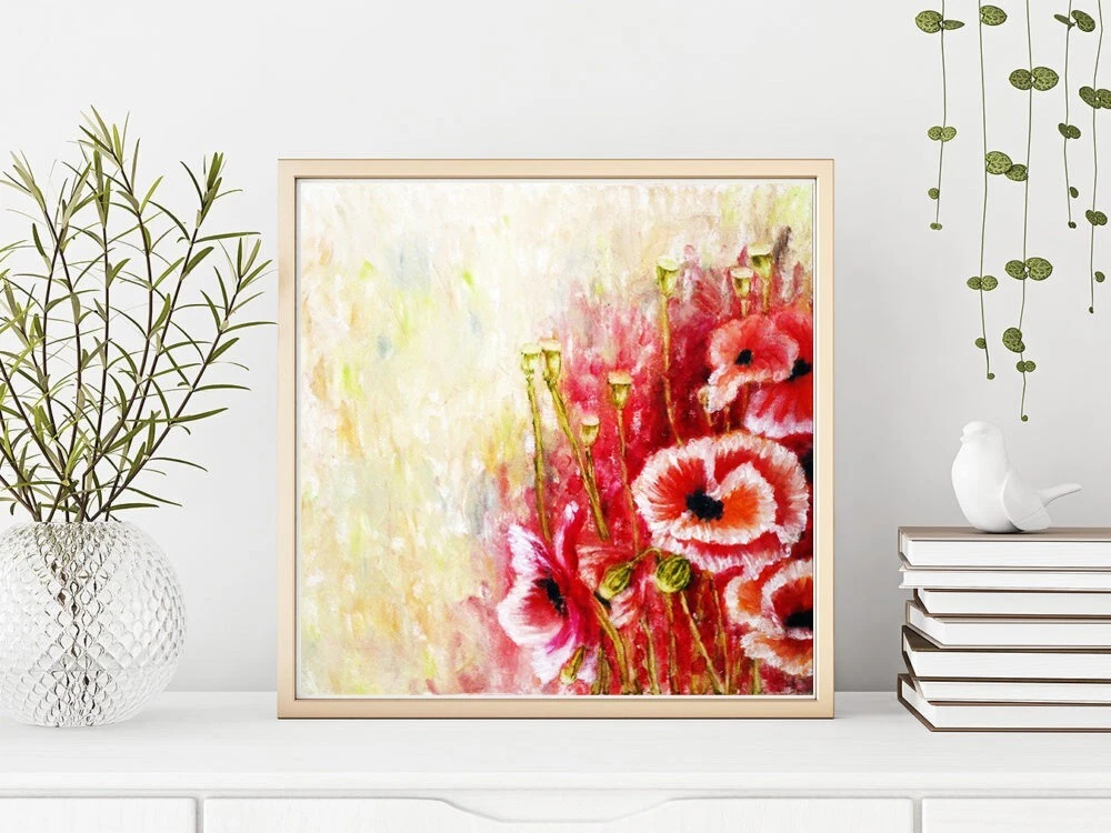 ๐ฟ Ukrainian red poppies oil painting on canvas, Impressionist red poppy artwork, Ukrainian field landscape artwork, Ukrainian artist, Ukrainian shop, Ukrainian seller ๐ท Original author's oil painting on stretched canvas. It's not a copy or a print. One of a kind artwork. ๐ฟ Size: 40x40cm / 16x16" ๐ท Signed from the back / Made in Ukraine, june 2022. ๐ฟ Materials: professional oil paints, stretched canvas. ๐ท I use exclusively professional and safe high quality paints for artists in my artworks. ๐ฟ Each parcel is securely and beautifully packed, so you don't have to worry about its safety. ๐ท Please note that paintings are sent without frames.