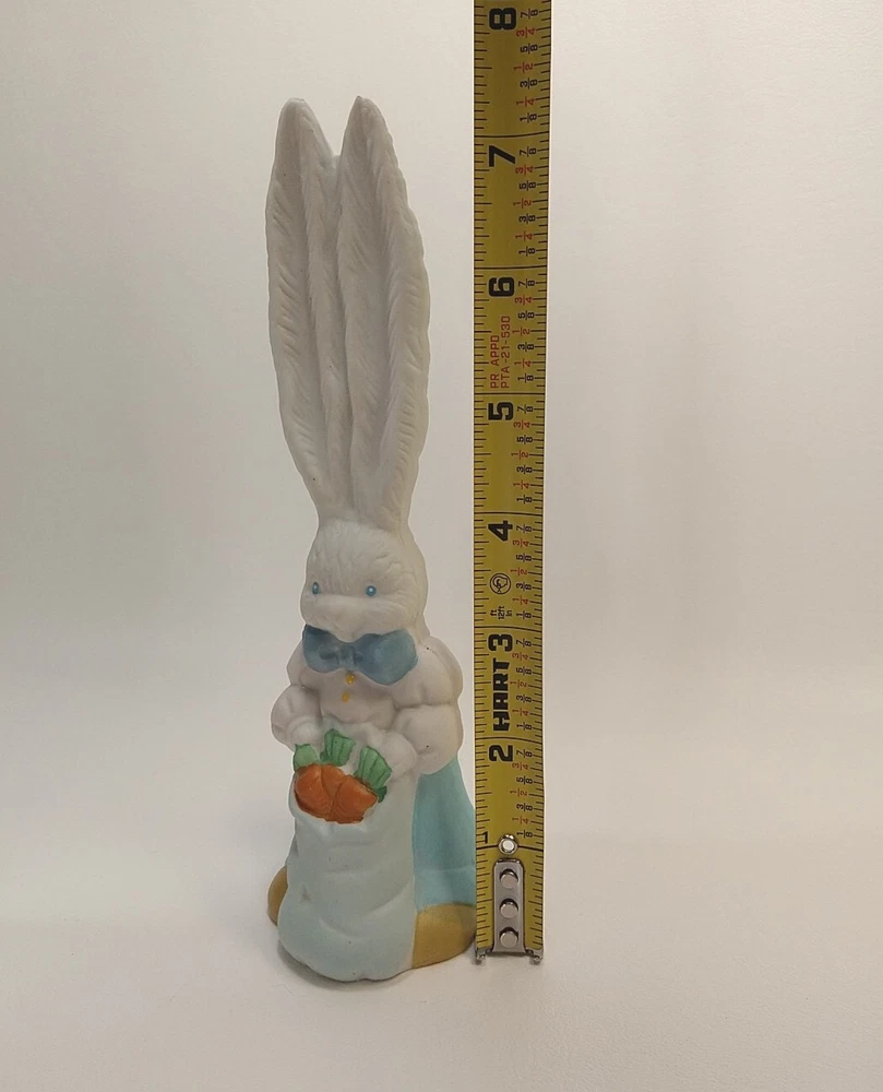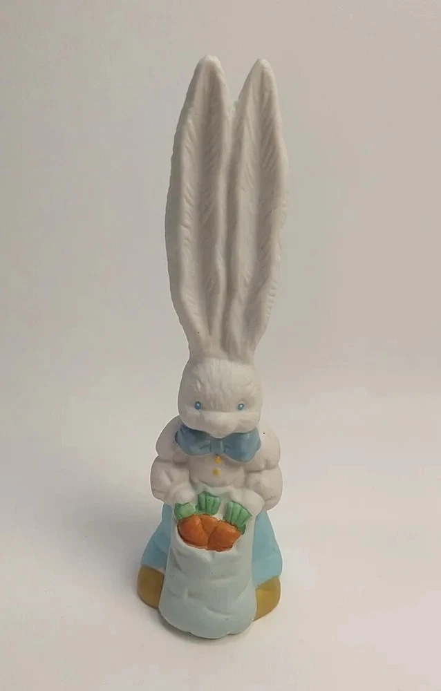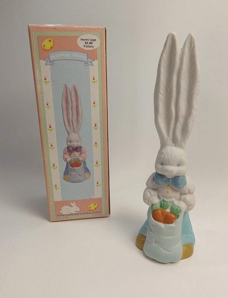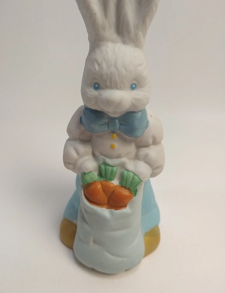 Porcelain Bunny Rabbit Figurine Bell 7.5" - Spring Easter - Hermitage Pottery.