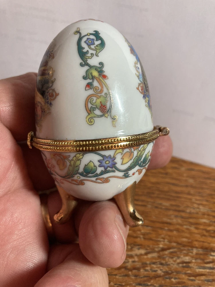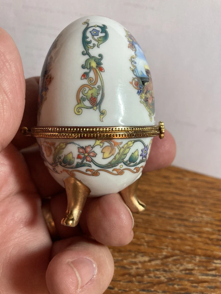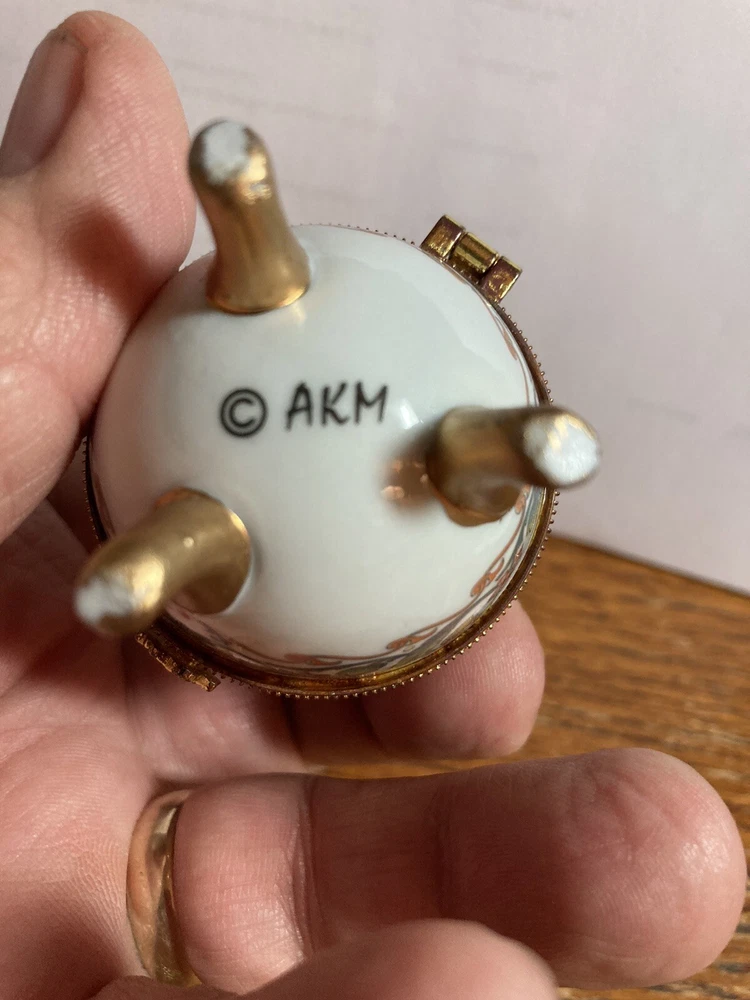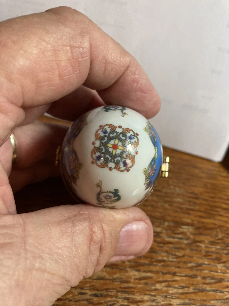 Very good condition hinge is glued shut hinge came loose I glued it back together and inadvertently got glue on hinge so it’s just a figurine unless you decide to try to get glue off of hinge sell as is no returns!! Shelf
