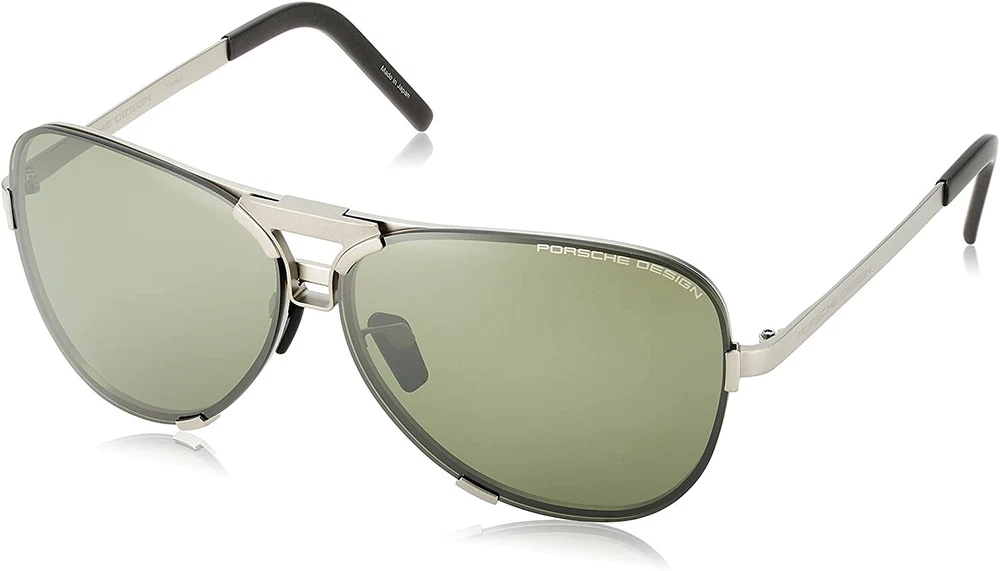 DESCRIPTION: Old-school style with modern details – the new Heritage collection pays homage to the legendary roots of Porsche while drawing on the latest technologies. Porsche Design P'8678 sunglasses present an exclusive reinterpretation of the iconic P'8478 from 1978 – rendered in high-tech titanium. The classic teardrop-shaped lenses feature an intelligent release mechanism for a quick and easy exchange that allows the wearer to exchange lenses quickly and easily to adapt to different light conditions. Robust, impact- and scratch-resistant polycarbonate lenses. History in its most innovative form. Porsche Design Round Sunglasses Model: P 8678 -B Gunmetal Titanium Frame Style Full-rim Olive Mirrored Grey Lenses POLARIZED (CAT 2) + Extra Set Lenses. Easily swap lenses with the quick release mechanism. Includes Case & Dust Cloth RX-able (Prescription, Bi-Focal/Progressive) UV400 Filter Country of Manufacture: Japan Weight: 29g Brand New, With Box, Warranty Papers, and washcloth. Polycarbonate anti-reflection sunglass lenses with complete UV protection. MSRP: $550 USD 67mm(Lens) x 11mm (Bridge) x 140 mm (Temple) Authentication & Warranty All our Eyeglasses and Sunglasses are obtained directly from the Manufacturer. Guaranteed Authentic or your money back. Your order will be shipped with the utmost care and will also be fully insured.