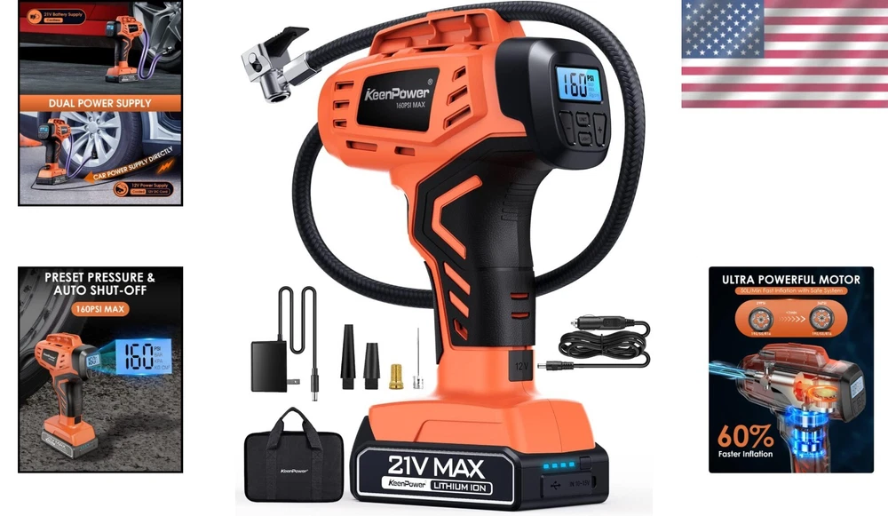Portable 21V Tire Inflator Air Compressor - Rechargeable & Car Adapter Included ‹ › ‹ › ‹ › ‹ › ‹ › ‹ › ‹ › ‹ › ‹ › ‹ › Portable 21V Tire Inflator Air Compressor -Rechargeable & Car Adapter Included Key Features: Auto Detect & Shutoff: Effortlessly preset your desired pressure value and let the tire inflator handle the rest. The compressor shows real-time pressure and automatically shuts off once the target is reached, eliminating any concern of over-inflation. Duel Power Supply: Enjoy the flexibility of a 21V rechargeable Li-ion battery pack combined with a 12V car power DC adapter, allowing you to inflate your tires conveniently whether at home or on the go. Fast Inflation & User-Friendly Design: An advanced high-performance chip enables rapid inflation; inflating 195/60 R14 tires to 35 psi takes just 3 minutes, while 215/60 R16 tires will reach the same pressure in only 5 minutes. Its ergonomic design ensures a comfortable grip, allowing for easy usage while maintaining stability on the ground. Multiple Purpose: Ideal for cars, motorcycles, bicycles, sports balls, and inflatable pool toys. *Note: Not suitable for large truck tires. More than a Tire Inflator: Equipped with a versatile built-in flashlight offering three modes (Normal, Strobe, SOS), it ensures visibility in the darkest of conditions. Additionally, a 9V/2A QC3.0 USB-C output port on the battery pack allows for charging of your devices. Why Choose Our Portable Tire Inflator? The ultimate solution for emergency inflations, this portable tire inflator is designed with versatility and efficiency in mind. It seamlessly combines powerful inflation capabilities with smart technology and dual power options, making it an indispensable tool for any vehicle owner. Don’t let flat tires ruin your day; order the Portable 21V Tire Inflator today and take control of your journey with confidence! Shipping Free & Fast Shipping - We offer free shipping to most of the USA with a normal delivery time of 3-7 days. However, due to the current situation, additional delivery time (up to 3 weeks) may be required for some items. Alternative Carriers - We may use alternative carriers (e.g. USPS, FedEx, UPS, etc.) to ensure your package arrives safely and on time. Due to the use of multiple carriers, we are unable to provide a tracking number automatically. Handling Time - Orders are processed and shipped within 1-2 business days of receiving cleared payment. Shipping Restrictions - Shipping to Alaska, Hawaii, Puerto Rico, Guam, and other US territories may incur shipping charges or delivery restrictions. Please contact us before ordering, or your order can be refunded/cancelled. State Restrictions - There may be restrictions based on your state of purchase. For example, certain items may not be shipped to California due to state regulations. Contact for Tracking Updates - If you require tracking updates or have any concerns about the delivery of your order, please feel free to contact us, and we will be happy to assist you. Return 30-Day Hassle-Free Returns - We want you to be completely satisfied with your purchase. If you are not, you can return the item within 30 days of receiving it for a full refund or exchange. Easy Return Process - To start a return, simply contact us and we will provide you with a prepaid return shipping label and detailed instructions. Restocking Fee - There are no restocking fees for returns. However, the buyer is responsible for return shipping costs if the return is not due to a seller's error. Refund Processing Time - Refunds will be processed within 5 business days of receiving the returned item in its original condition. Payment We accept all major credit cards, PayPal, and Apple Pay for your convenience. Your payment information is secure and encrypted to ensure a safe and seamless transaction. Please complete your payment within 3 days of purchase to avoid any delays in shipping. Feedback Your feedback is extremely important to us. We strive to provide the best products and customer service possible. If you are satisfied with your purchase, please take a moment to leave us a positive review. If you have any concerns or issues with your order, please contact us before leaving negative feedback. We are committed to resolving any problems and ensuring your satisfaction. Contact Us If you have any questions or concerns, please feel free to reach out to our customer support team. You can contact us through the eBay messaging system. We are available Monday to Friday, 9:00 am to 5:00 pm EST, and we will do our best to respond to your inquiry within 24 hours. Buy it now and enjoy a pleasant shopping experience! UPC: Not Set Model: Not Set Item Width: Not Set Item Length: Not Set Item Height: Not Set Item Diameter: 3 in Item Weight: 2.5 lb Unit Quantity: 1 Set Includes: Pressure Gauge,tire inflator,21v lithium-ion battery,battery charger,car power adapter,storage bag,nozzles Brand: Unbranded Type: Piston Compressor Portability: Portable Voltage: 21 V Power Source: Corded Electric Maximum Working Pressure: 35 Psi Tank Capacity: Not Set Lubrication Type: Oil-Free Horse Power: 0.5 hp Tank Material: Not Set Flow Rate: Less than 100 L/min MPN: Not Set Color: Red Country/Region of Manufacture: Not Set Manufacturer Warranty: Not Set Unit Type: Unit