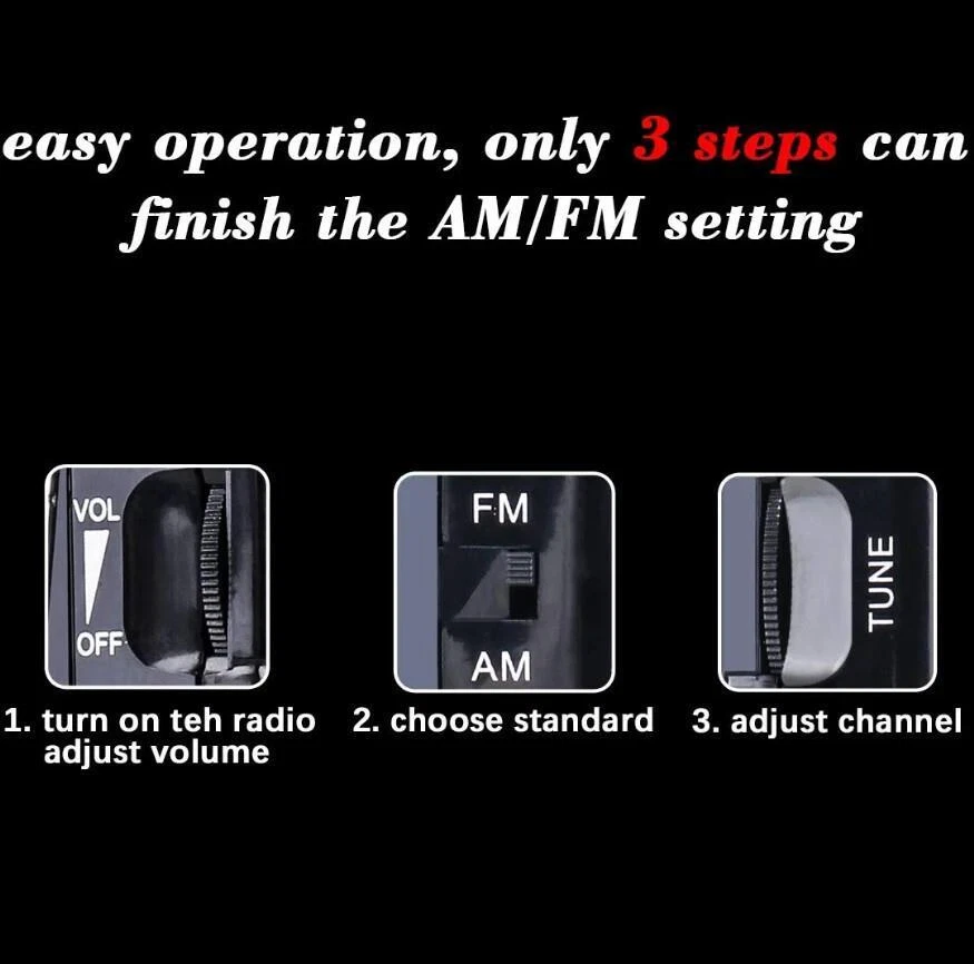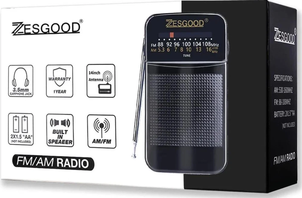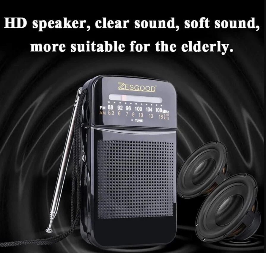 Portable AM FM Radio Compact Transistor Radio Pocket Radio HD Speaker Black New Item Description 🧿Brand ZesGood 🧿Power Source Battery Powered 🧿Radio Bands Supported 2-Band 🧿Product Dimensions 4.53"L x 2.56"W x 0.98"H 🧿Modified Item No Payment We accept payment only through PAYPAL Shipping We ship products worldwide through standard express courier service, it will reach within 7 to 10 days to abroad buyers, we ship the product after recieved clear payment and give full information about shipment to the buyer Return We accept product return within 7 to 21 days from delivery date but product should be in original position and not in damaged condition,the return shipping charges will be buyer responsibility