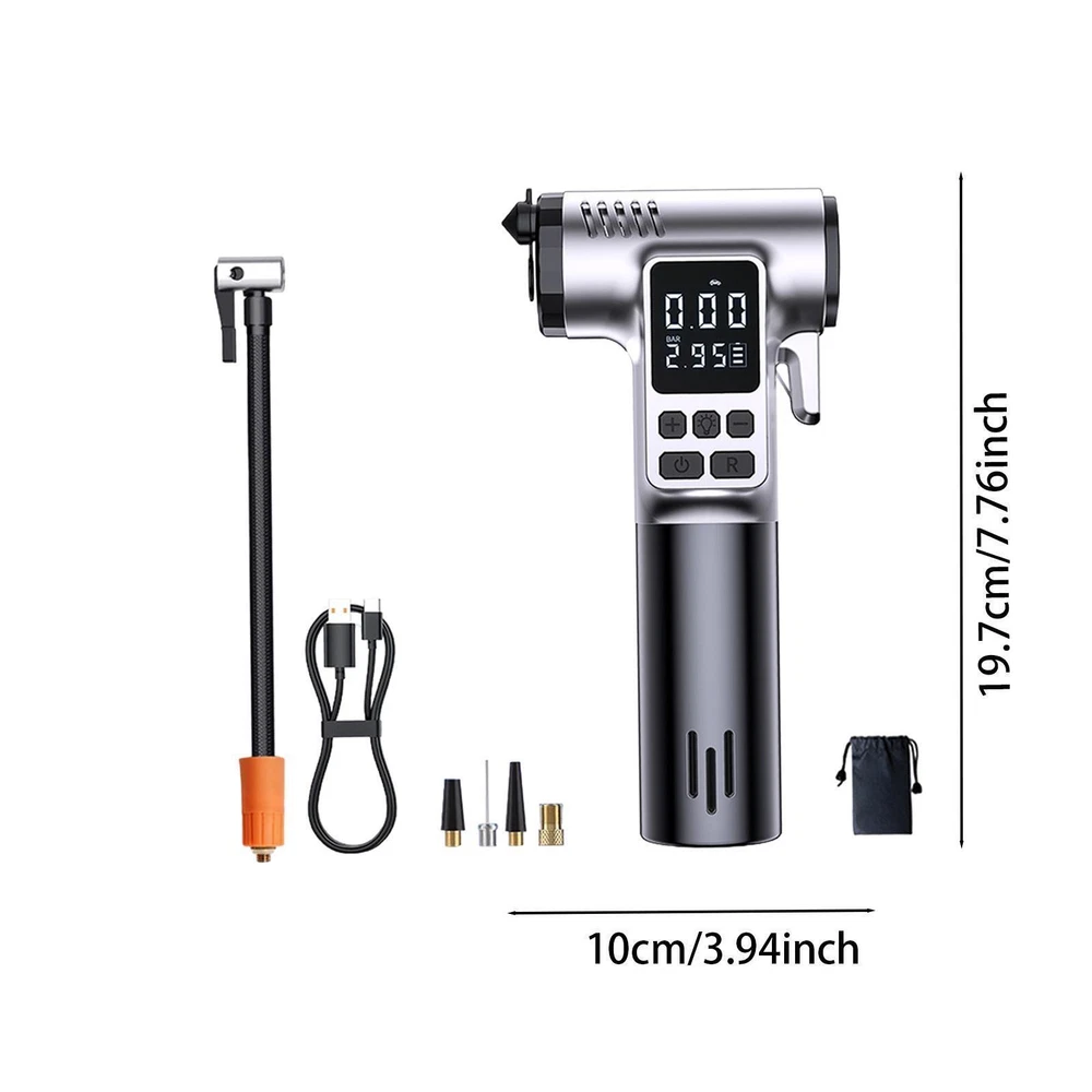 Store Home | Home & Garden | Musical Istruments & Gear | Toys & Hobbies | Sporting Goods | Health & Beauty | Consumer Electronics Portable Air Pump Multifunctional Air Pump for Motorcycle Vehicles Ball Description: 【Multifunctional Inflator Pump】: This versatile inflator pump has an flow rate of 20L/min, it also is a window breaker with protection cover and seatbelt cutter emergency tools for emergencies. Illumination system that supports three modes, making it convenient to use in dark conditions. 【Large Digital Display】: The handheld design features a large digital display for easy operating while the real time tire pressure automatically stop when full inflation is achieved 【Features】: With an output power of 50W and a rated voltage of DC 7.4V, this inflator pump can inflate a wide range of items from vehicles cars, bicycles to balls quickly and efficiently. It features a pressure range of 0.2-10.3Bai/3-150psi to cater to different inflation requirements 【Portable Size】: Multifunctional air pump measures 19.7x10x4.65 cm/7.76x3.94x1.83 inch, making it compact and portable for all your inflation needs 【Package Contents】: The package includes 1 inflator pump,1 inflation tube, 1 charging cable, 1 storage bag, 1 set of inflatable nozzles, and an instruction manual Specification: Cylinder diameter: 17 cylinders Material: pp Air flow: 20L/min Light: with Output power: 50 W Rated voltage: DC 7.4 V Charging interface: Type C Charging time is about 4 hours Inflation pressure range: 0.2-10.3Bai/3-150psi Size Chart: 19.7x10x4.65 cm/7.76x3.94x1.83 inch Package Includes: 1 Multifunctional Inflator Pump Set Note: Please allow slightly errors 1-2cm/0.39-0.79inch differences due to manual measurement. Payment Shipping Returns If you are bidding or ordering more than one item, the items will be combined into one order automatically thus you can pay altogether. If you want not to combine, please buy one and immediately pay one separately. Please pay what you win in 7 days. Unpaid Dispute will be automatically open if payment is not received after 7 days. If you pay the bill after received unpaid dispute, please email us to close the unpaid dispute. Because the unpaid dispute will not be closed automatically, and we may ignore it. The buyer is responsible for any applicable import duties and local taxes. Please verify with your customs before making your purchase. Please verify your address during checkout. We are not responsible for any wrong or undeliverable addresses. We are committed to give you the best customer service possible. If for any reason you are unsatisfied with a purchase, please contact us and we'll assist you with a prompt solution. Please let us work on the issues. We'd like to settle any problem in a friendly manner. Please do not open a case on eBay or PayPal, or leave any negative or neutral feedbacks directly! We always reply to messages within 2 business days (off-duty at weekend). Due to the difference of time zone between Hong Kong and your location, sometimes the answer will be delayed. If you do not get a response from us after 2 business days, please check your junk or spam mailbox. Unsatisfied product can be returned within 30 days from the delivery date . We can offer a full refund or exchange, but we are not responsible for return shipping cost. Please contact us to get a RMA number before sending out your return. Feedback: 1. Since your feedback is very important to our business's development, we sincerely invite you to leave positive feedback with four 5-Detailed Selling Rating (DSR) to us basing on your satisfaction with our commodity and service. It's just take you 1 minute. 2. Unfortunately, If you are planning to give us a neutral/negative feedback because of your bad buying experience with us, please contact us at any time so as to clear up your discontent and resolve the problem. Featured Products People always bought together with