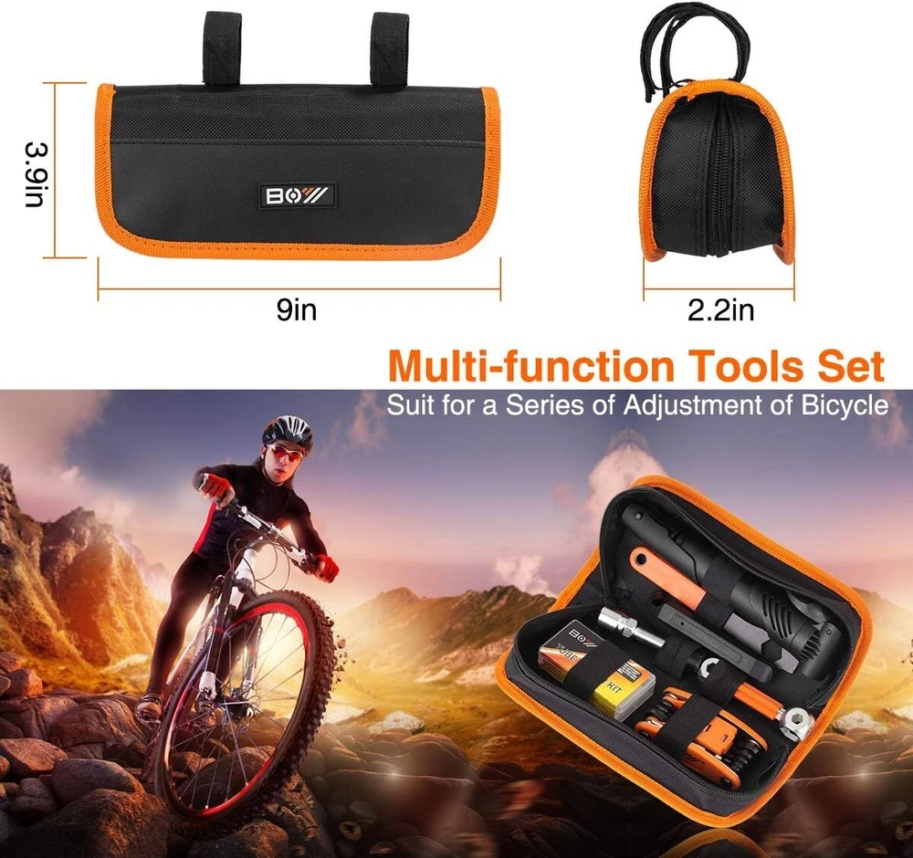 Bicycle Repair Bag With Tire Pump, Portable Tool Kit for Camping Travel - Patches, Inflator, Maintenance Essentials All in One Safety Kit product inventory, bike tool kit, bike repair kit, bike kit, bike tire repair kit, bicycle tool kit, bicycle repair kit, bike tire patch kit, mountain bike tool kit, bike patch kit, bike tools kit set, bike repair multitool, Experience The Best Bicycle Repair In New Mountain Bike Tires Repair Tools. Complete Basic Mountian Compact Professional Accessory, Trike Biking, Cycling Trek Road Survival Assembly Fix Multi-tool Mechanic Parches, Supports The Repair In A Harsh Environment And Immediately Continues To Ride Without Danger. Bike Repair Kit With Pump And Bag, Bicycle Tube Repair Patch Tool Kit, All Accessory Better Than Other Similar Products—compared To The Repair Function Or The Quality Of Accessories. You Can Use A Nylon Velcro To Cling Tightly To The Bicycle Stand And Ride With You Wherever You Want, Without Losing It. Increasing Your Safety Is Our Belief In Our Customers. This Product Is Produced For Experience The Most Convenient Bicycle Indoor And Outdoor Tire Repair, Experience And Suggestions Or Problems, We Agree With All Your Views And Fulfill Commitments.