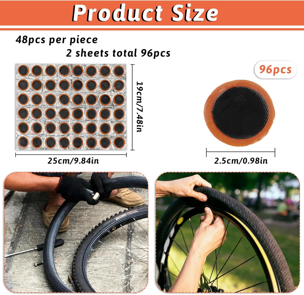 Store New Arrivals Add to Favorite View Feedback Contact Bike Repair Kit with Rubber Patches for Inner Tube Description Part Number 568168_1_1CiWRTDM Number of Items 96 Item Dimensions LxWxH 0.98 x 0.98 x 0.04 inches Package Weight 0.06 Kilograms Model Name bike bicycle tire patches Item Package Dimensions L x W x H 4.84 x 3.9 x 0.51 inches Reliable and Durable: Made from high-quality rubber, our bike bicycle tire patches are designed to offer long-lasting performance. With their excellent strength and flexibility, these patches provide a reliable solution for repairing bicycle tires, motorcycle tires, and other inflatable items. Compact and Portable: Measuring 25mm/0.98 inches in diameter, our not self-adhesive rubber patches are lightweight and ultra-thin, making them easy to carry during your rides. Be prepared for any unexpected punctures or holes with this compact and convenient repair kit. Easy to Use: Our bike tire patch offers a simple and efficient solution for fixing tire damage. Follow the four easy steps: file the surface around the hole; apply glue; attach the patch; and press until dry. It's a hassle-free process that saves you time and quickly gets you back on the road. Versatile Applications: This rubber bike tire patch is not limited to bicycles and motorcycles. It can also be used for repairing inner tubes, air beds, dinghies, air mattresses, paddling pools, and more. Its versatility makes it a must-have tool for outdoor enthusiasts and DIYers. Abundant Quantity: Each package includes 96 pcs of bicycle tyre tires patches, ensuring you have an ample supply for multiple repairs or future needs. Stay prepared and confident knowing you have enough patches to handle various tire repair situations. Description: Product name: 96pcs bike bicycle tire patches Style: 2 sets, round 25mm*48 pieces Material: Rubber Single product size: diameter 2.5cm Packing size: 24*16*1.1cm packing list: 2 sheets (96pcs) rubber bike tire patch ABOUT US We offer the best prices around on high quality products. Our E-store includes media such as books, movies, music and games while offering electronics, toys, sporting apparel, clothing, tools, general home, garden items and more. SHIPPING We are always working hard to ensure your package arrives as soon as possible. Please understand that some factors like weather, high postal traffic, and the performance of shipping companies are outside of our control. We offer free shipping to the lower 48 states and ship within 2 business days of payment, usually sooner. We do not accept P.O. Boxes. Please provide a physical address. For shipping outside of the continental USA, we only use eBay's Global Shipping Program.The item is shipped to KY and then sent to the rest of the world. International customers are responsible for all duties and taxes. Continue to check out in order to calculate costs for shipping the item to your country. Messages regarding eBay's Global Shipping Program MUST be directed at eBay EXCLUSIVELY. RETURNS We offer a 30-Day Return Policy on items which you are not completely satisfied with. You have the option for a full-refund or an exchange of the item. No returns are available on items shipped outside of the USA. PAYMENT We accept PayPal. CONTACT US This page content is yet to come Please ad us to your favorite seller and visit again later Thank You CUSTOMER SATISFACTION We try our very best to make sure every customer is completely satisfied. If there's a problem, message us! We're happy to help. WE ACCEPT Copyright © 2021 AutoDS. | All Rights Reserved