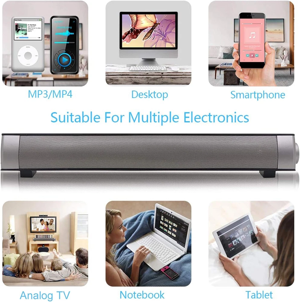 Store New Arrivals Add to Favorite View Feedback Contact Bluetooth Speaker, Portable Wireless Speaker, USB Powered Speaker with Loud HD Sound, Bluetooth 5.0, Built-In Mic, for Smartphone, Tablet, PC, Projector Description Item model number SOUNDBAR LP-S08 Signal-to-Noise Ratio 102 dB Number of Items 1 Power Source Battery Powered Control Method Remote Warranty Type Full Warranty Compatible Devices Projector, Laptop, Desktop, Television, Smartphone Bluetooth Range 10 Meters Controller Type Button, Remote Control Unit Count 1.0 Count Speaker Size 40 Millimeters Wireless Communication Technology Bluetooth, AUX Line in Number of Power Levels 2 Material Plastic Includes MP3 player? No Number of Microphones 1 Input Voltage 5 Volts (DC) Age Range (Description) 5 - 95 Impedance 4 Ohm Number of Batteries 1 Lithium Ion batteries required. (included) Recommended Uses For Product For Televisions, For Computers, For Smartphones or Tablets Specific Uses For Product Travel, Party, Home Theatre Included Components Product manual, 3.5mm Audio Cable, RCA Cable, USB Charging cable Indoor/Outdoor Usage Indoor Subwoofer Connectivity Technology Wireless Battery Capacity 2000 Milliamp Hours Country of Origin China Speaker Maximum Output Power 10 Watts Water Resistance Level Not Water Resistant Connectivity Protocol Bluetooth Item Weight 1.1 pounds Connectivity Technology Wireless, RCA, Bluetooth, Auxiliary, USB Special Feature Portable, Built In Microphone, USB Port Mounting Type Tabletop Mount Color G1 Frequency Response 18 KHz Speaker Type Soundbar Is Waterproof False Batteries 1 Lithium Ion batteries required. (included) Audio Output Mode Stereo Model Name Bluetooth Speaker Product Dimensions 15.7"D x 2.25"W x 2.1"H Size SB-A01 Space-Saving Design: Ultra Slim, Sleek AUX Speaker, letting users play what they want without sacrificing valuable desk space, it's a great wireless speakers bluetooth for Travel, Party and Home Multi-Modes Speaker: This USB speaker is with 2.0 CH multimedia speaker system; It can stream your music through bluetooth/USB-DAC function/3.5mm line-in jack/TF Card, perfect for home, dorm room, kitchen, bathroom, car Bluetooth 5.0: With advanced Bluetooth technology, this wireless speaker provides faster connection speeds, connecting to the bluetooth speaker is fast and easy; Lets you lose the wires and listen to your music with a tap of a finger Built-in Microphone: You can conveniently pick up a call with this mini speaker in your car, bathroom, home, office, or anywhere when it is connected to your smartphone What You Get: The package includes Portable Bluetooth Speaker, USB charging cable, 3.5mm AUX audio cable, RCA cable, user manual, Remote Control, backed by Our 12-month hassle-free purchase experiences and our customer services TOPROAD Compact Monitor Speaker - A Complex-free Connection Wired and Wireless Bluetooth Speaker √ Bluetooth Mode: Bluetooth Core Specification 5.0, supports HSP, HFP, A2DP, AVRCP format. English language instruction provided. √ Audio Link Mode: Connect the speaker with 3.5mm audio line. Speaker will connect automatically. Now you can enjoy music from connected devices such as smartphone, projector, PC and more. √ TF Card Mode: Turn on the speaker, it will be on bluetooth mode automatically, insert TF Card, speaker will be on TF Card play mode.(Note: TF card not included) √USB-DAC Mode:Most computers and laptops can work this USB-DAC function normally, other than few old personal computers and laptops. Simply insert the USB cable into your PC’s USB port for play and the speakers are good to go. Specifications: Output Power: 5W*2 Unit Sixe: 4 Ohm Battery: 3.7V 2000mAh Power Supply: DC 5V Frequency Response: 100HZ-18khz Product Size: 15.7*2.25*2.1inch Weight: 1.2lb Package Includes: 1 x Portable Bluetooth Speaker 1 x USB Cable 1 x RCA Cable 1 x 3.5mm Audio Cable 1 x User Manual Important Reminders: 1. Make sure you charge the wireless speaker prior to using it. 2. If you feel the volume is so feeble, don't worry. You need to increase the volume on your device firstly, and then use the speaker knob to adjust your favorite volume. ABOUT US We offer the best prices around on high quality products. Our E-store includes media such as books, movies, music and games while offering electronics, toys, sporting apparel, clothing, tools, general home, garden items and more. SHIPPING We are always working hard to ensure your package arrives as soon as possible. Please understand that some factors like weather, high postal traffic, and the performance of shipping companies are outside of our control. We offer free shipping to the lower 48 states and ship within 2 business days of payment, usually sooner. We do not accept P.O. Boxes. Please provide a physical address. For shipping outside of the continental USA, we only use eBay's Global Shipping Program.The item is shipped to KY and then sent to the rest of the world. International customers are responsible for all duties and taxes. Continue to check out in order to calculate costs for shipping the item to your country. Messages regarding eBay's Global Shipping Program MUST be directed at eBay EXCLUSIVELY. RETURNS We offer a 30-Day Return Policy on items which you are not completely satisfied with. You have the option for a full-refund or an exchange of the item. No returns are available on items shipped outside of the USA. PAYMENT We accept PayPal. CONTACT US This page content is yet to come Please ad us to your favorite seller and visit again later Thank You CUSTOMER SATISFACTION We try our very best to make sure every customer is completely satisfied. If there's a problem, message us! We're happy to help. WE ACCEPT Copyright © 2021 AutoDS. | All Rights Reserved