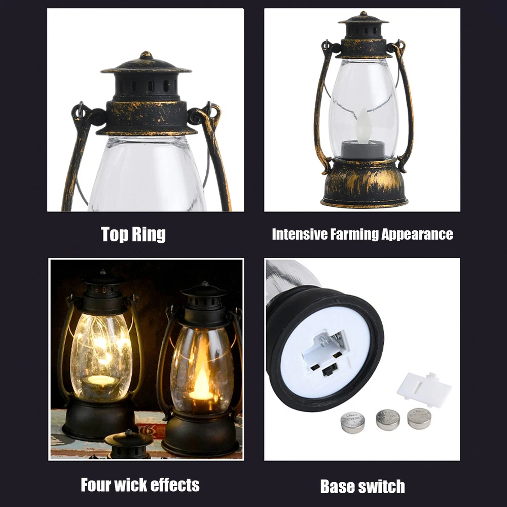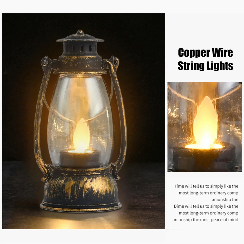 Bullet Points: [ Country Lantern Style ] Adopting a vintage style with retro elements, Outdoor Battery Operated Lanterns are creating a cozy Halloween atmosphere for parties, featuring a delicate and gorgeous appearance. [ Multiple Styles ] Bringing a sense of happiness and coziness, LED Vintage Lantern is designed with the wired and the flickering flame 2 styles for you to choose from, emitting realistic lights for party decorations. [ Wide Application Range ] Suitable for both indoor and outdoor use, Halloween LED Lantern is adopting a battery-operated design, perfect for camping lights, garden decorations, and party supplies. [ Ideal Party Supplies ] A cute addition to your Halloween decor, Halloween LED Vintage Lantern is perfect for Halloween, Autumn Fall Harvest, Thanksgiving, and other festivals, ideal for your garden, patio, lawn, yard, porch, and balcony. [ A Gift to Family ] LED Vintage Camping Lantern is suitable for a variety of festivals and parties, an ideal choice for party favors and decorations, and a perfect gift for your friends, neighbors, and families. Description: LED Vintage Lanterns adopt a retro design that is full of classic elements, perfect for Halloween and Thanksgiving party decorations. Specification: Name: LED Vintage Lantern Material: PP polypropylene + electronic components Size: Diameter 6.7cmx Height 13cm/2.6*5.1inch Single weight: about 48g, a box of 12 weighs about 780g Battery: already equipped with batteries (3 AG13 button batteries), the batteries can be replaced when they are used up Packing List: LED Vintage Lantern*1