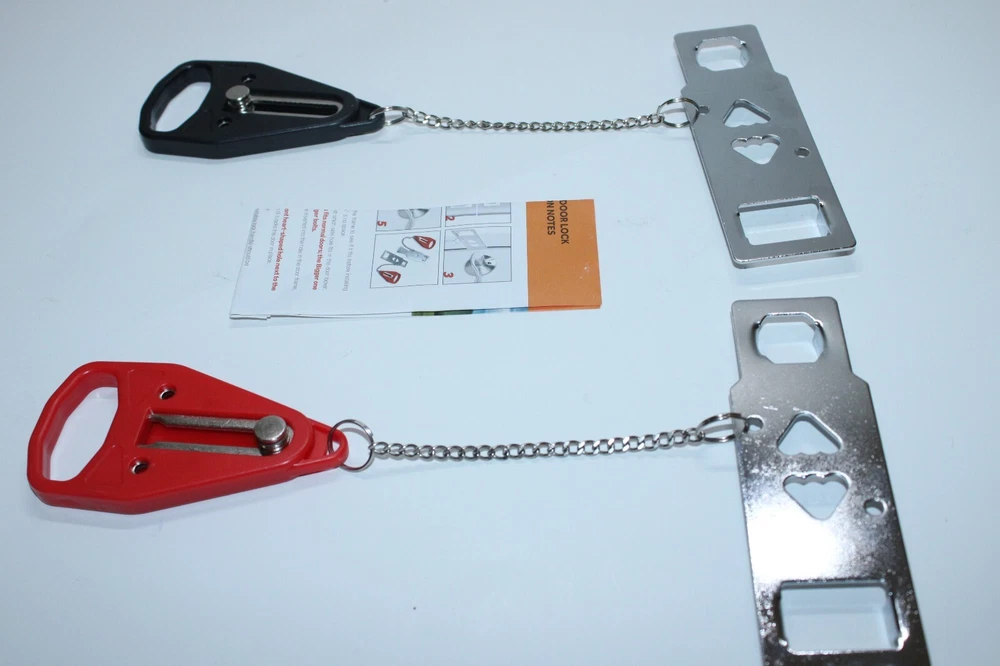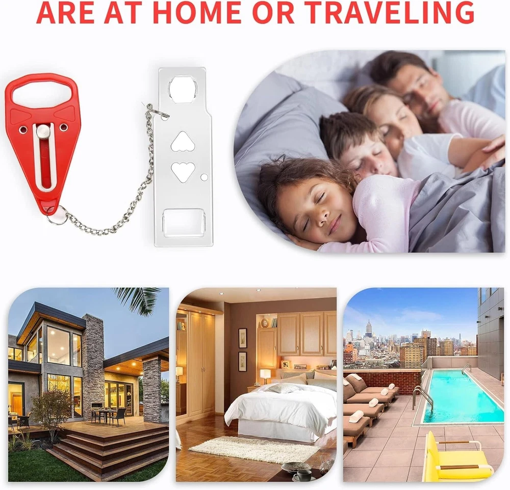The Rerishom Portable Door Lock 2-Pack is designed to provide additional privacy and safety in your home. This red and black door lock set includes two pieces for easy installation on any door. With dimensions of 5.94x5.51x0.75 inches and a weight of 0.51 pounds, it is portable and can be used to enhance security in various rooms. Perfect for temporary use or permanent installation, this door lock is a practical solution for adding an extra layer of protection to your home.