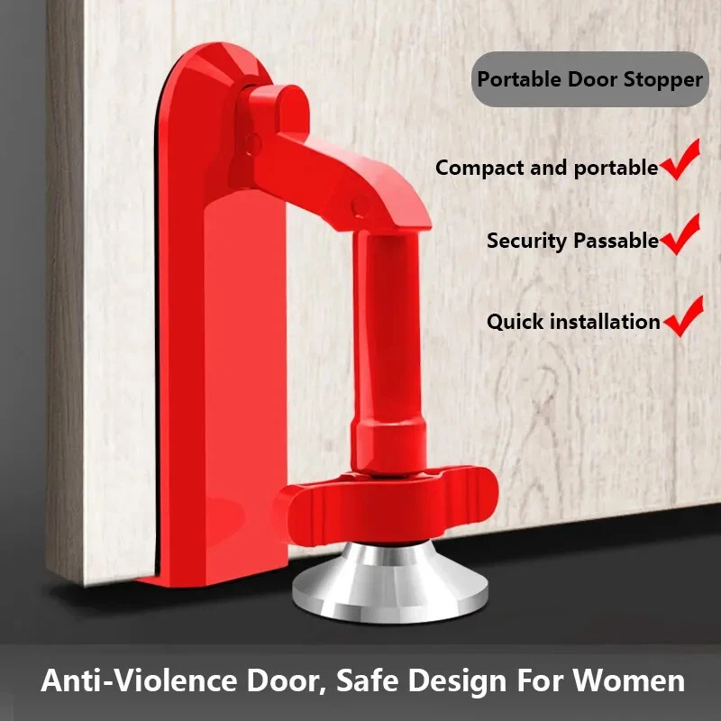 Menu Other Items Feedbacks About Us Contact Us Add To Favorites Portable Door Locks Self-Defense Door Stop Travel Accommodation Door Stopper Security Device Hotel Anti-Collision Door Stopper Features: 1.The lock is a portable door lock that installs and remove in seconds without any tools required. 2.The innovative system of hinges and angles anchor the firmly to floors when outside pressure is exerted on the door. 3.The lock is a unique, new and innovative portable door security device for anyone needing privacy and security. 4.The footpad, situated bellow adjustable foot allows the door lock to be installed on any type of surface: hardwood floor, carpet, tiles, linoleum, etc. 5.The portable lock is compact and will easily fit into any medium-sized bag, suitcase or backpack. 6.This revolutionary security device installs in seconds, creating a vertical force against outside pressure for peace of mind at home, the office and in hotel rooms Specification: Color:Red Material:Zinc Alloy Quantity: 1pcs Size:12x8.7CM Fit Door Thickness:35-50mm Notes: 1. Due to the different monitor and light effect, the actual color of the item might be slightly different from the color showed on the pictures.Please allow 1-3cm measuring deviation due to manual measurement. Package including: 1 x Portable Door Stops 1 x Cloth bag Item Specification origin Mainland China certification none type Door Stops model Door Locks color Red material Zinc Alloy size 12x8.7CM feature 1 Door Stops feature 2 Door Stopper feature 3 Floor Nail-free Doorstop feature 4 Self-Defense Door Stopper