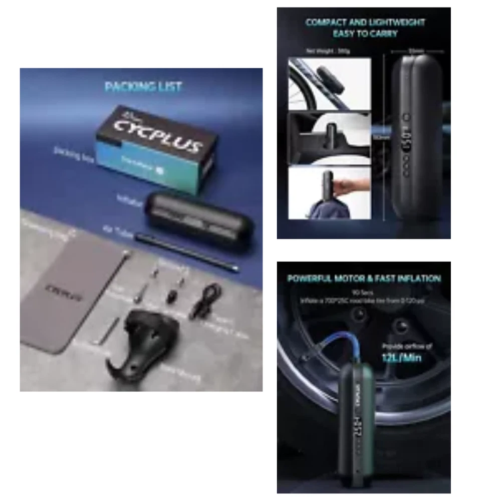 eBay eBay eBay eBay eBay Electric Air Compressor Portable Bicycle Pump Car Tire Inflator, Max ... 【Max 150 PSI/10.3 Bar】Air pump has four pressure units to choose from (PSI, BAR, KPA, and KG/CM²). With multiple attachments included---Presta, Schrader Valves and a ball needle. It is suitable for cars, motorcycles, mountain bikes and road bikes 【Lightweight】The portable air pump features a compact, cordless design that allows you to easily take it with you anywhere you go.The product comes with a storage bag for easy storage.Weighing only 380 grams, cordless tire inflator is a must-have for drivers, cyclists, and adventurers. 【Efficient】This portable air compressor for car tires is a great solution for emergencies on the way. A powerful motor that can quickly inflate a 195/65 R15 car tire from 22 PSI to 36 PSI within 3 minutes. Besides, it only takes 90s to inflate a 700*25C road bike tire from 0 to 120 PSI 【Automatic】 Rest assured with the auto shutoff design. This air pump will stop automatically once reached the preset pressure. No more over-inflating, it's simple and safe.It also has the function of measuring tire pressure, you can know exactly the current tire pressure. 【Convenient】The air pump has an LED light on the top to turn it into an emergency power source in the dark, and a USB-C input port and a USB-A output port on the top to reverse the power supply and use it as a power bank for your mobile phone. Shipping Policy FREE SHIPPING in all orders! Orders are usually processed and shipped out after 48 HOURS during BUSINESS DAYS (Monday to Friday) after payment has been received. But please be reminded that we are NOT processing and shipping orders during WEEKENDS and HOLIDAYS . Please make sure your ADDRESS is VALID for both UPS and USPS COURIER SERVICES . Please be reminded that costs incurred due to INCORRECT or UNDELIVERABLE ADDRESS should be shouldered by the buyer. The shipping services that we use are UPS , FedEx, USPS etc. Shipping can take 2 to 5 days after the item is dispatched. We ONLY ship to the 48 STATES , NO APO/FPO ADDRESSES or PO BOXES . Local pickups and combined shipping options are NOT provided at this time. Return Policy Domestic shipping EXPEDITED . We have many different shipping locations depending on the product you buy and the shipping location that you choose. We try to ship most items within 72 hours of payment Monday-Friday. Most orders are in transit for 5 DAYS but some may take longer. If you have a specific time frame please CONTACT US before you make the purchase. Return shipping is the BUYER’S RESPONSIBILITY unless the return is a result of our mistake. We will pay for shipping replacement back to you if an exchange is requested. Payment Policy We accept payment by any of the following methods: PayPal Items can be returned for exchange or full refund WITHIN 30 DAYS from the date you receive your merchandise. We are not responsible for any purchase after this 30-day period. Feedback & Contact Us Customer satisfaction is very important to us. If you have any problem with your order, please contact us and we will do our best to make you satisfied. If you have any queries, please contact us via Ebay. We usually respond within 24 hours on weekdays. Please visit our eBay store to check out other items for sale! Thank you for shopping at our store.