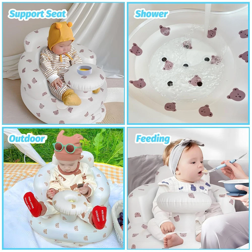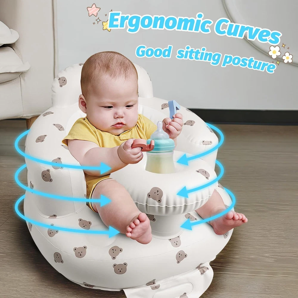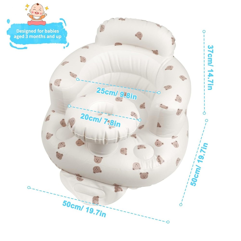 Inflatable PVC Baby Feeding Chair Core Parameters Material: Premium non-toxic PVC Size: Supports up to 67 lbs (30.4 kg) Color: Not specified Technical Specifications • Enhanced Design with Built-In Tray: Integrated tray for convenient placement of bottles or bowls during mealtime • Easy to Inflate: Effortlessly inflates in 3 minutes with built-in air pump; leak-proof design • Infant Safety Assurance: Skin-friendly, durable, and supports baby's spine with high backrest • Ergonomic Design: Mimics soft embraces with back airbags for double protection • Ideal Growth Partner: Suitable for babies 3 months+; portable for travel/camping Package Information Package Dimensions: Not specified