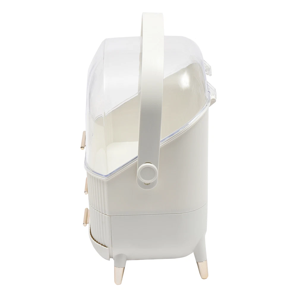 Portable Make Up Organiser Cosmetic Box Makeup Storage Box w/Lid Dustproof 18L Description Portable Make Up Organiser Made of high-quality HIPS and PS materials, this high-value portable make up organiser has a large capacity and can effectively hold most of your cosmetics. It also comes with an extra brush barrel so that your makeup brushes have their place too. While the carry handle design makes it very easy to carry as well, bringing unparalleled convenience to your life! Key Features Super Capacity: A large capacity of about 4 gallons can easily store most of your cosmetics, while it comes with a brush barrel to make it more convenient for you to store your brushes or makeup brushes. By the way, the first layer is 8.3in high, you can easily place high bottles. Transparent and Visible: This portable make up organiser has a visible design that makes it easy to see all the cosmetics in the box. Aseptic and Hygiene: The flip-top lid can keep your cosmetics free from dust, is not afraid of getting wet with water, ensures a dry and sterile storage environment, and is also easy to clean. Classified Storage: The three-layer design allows for sorted storage to keep all your daily essentials neat, organized, and within easy reach, making it easy for you to make reasonable use of space and also convenient for you to pick up later. Stylish and Exquisite: Classic and versatile white color and rounded shape with gold-plated legs is so stylish that you can't help but fall in love with it. Quality Assurance: This portable make up organiser uses high-quality HIPS and PS material, is solid and durable, and will not corrode and rust, the advantages of high strength make it can be used for a longer period of time. Easy to Carry: The 270° rotatable handle makes it easy to carry and accompany you on your journey, keeping you beautiful at all times. Ready to Use: It has a one-piece design without the need for installation. You can use it directly when you receive it, which is very convenient. Ideal Gift: This make up organizer is ideal for Christmas, Thanksgiving, Valentine's Day, Mother's Day, birthday, and other holidays for your mother, lover, family, and friends. Details Hand-free Design: The flip-top lid can keep open on its own, and the hand-free design makes it easier for you to pick up cosmetics. Height-boosting Feet: It has a height-boosting design with 4 height-boosting feet to make it more stable to place. Application This portable make up organiser is suitable store all kinds of cosmetics, nail polish, nail scissors, paper towels, and other daily appliances. Specification Material: HIPS and PS Color: White Shape: Rectangular Capacity: about 18L /4 gallons Brush Barrel Diameter: 12cm/4.7in Brush Barrel Height: 12.5cm/4.9in The First Layer Height: 21cm/8.3in Organiser Size: 25*18.5*37cm/9.8*7.3*14.6in Package Size: 41*23.5*31.5cm/16.1*9.25*12.4in Gross Weight: 1.89kg/4.2 lbs Package Included 1* Portable Make Up Organiser 1* Brush Barrel Notes: Please allow the slight color difference caused by the shooting light and 1-3cm error due to manual measurement and make sure you do not mind before ordering. Payment Delivery details Terms of sales About us Contact us Payment We accept ebay payment 。 Fees such as import duties, taxes are not included in the item price or shipping costs. These charges are the buyer's responsibility. Delivery details Shipping: 2-9 working days to: USA Terms of sales We maintain high standards of excellence and strive for hundred percent customer satisfaction. Feedback is very important to us. We hope that you contact us immediately before you give neutral or negative feedback, so that we can address your concerns. It is impossible to address issues if we do not know about them! About us Your satis faction is our ultimate goal. We work hard to earn your trust and future business. Our certified technicians have tested each item before shipping. The unit comes with 1 year limited warranty on all manufacturing defects. a) If you receive a defective item, you may return it or ask for a discount. Please contact us within 14 days after you receive the package. b) What you returned must be intact and in its original packaging as re? u. Customer is responsible for shipping costs of the returned item. c) We will cover the cost of shipping back t with the shipping rate indicated in the registration page. We will send you a new unit or refund the full payment you paid. Thank you. Contact us Business Hour Business Hour: Monday To Friday: 8:30 AM to 5:00 PM (Beijing China time) Due to time zones, our reply to your questions may not be immediately. But within above working time, we will reply your email within 24 hours. If it's non-workdays, please kindly be patient and wait till Monday. Please contact us with ebay message. Please feel free to contact us if you have any questions. Monday To Friday: 8:30 AM to 5:00 PM (Beijing China time) Due to time zones, our reply to your questions may not be immediately. But within above working time, we will reply your email within 24 hours. If it's non-workdays, please kindly be patient and wait till Monday. Please contact us with ebay message. Please feel free to contact us if you have any questions.