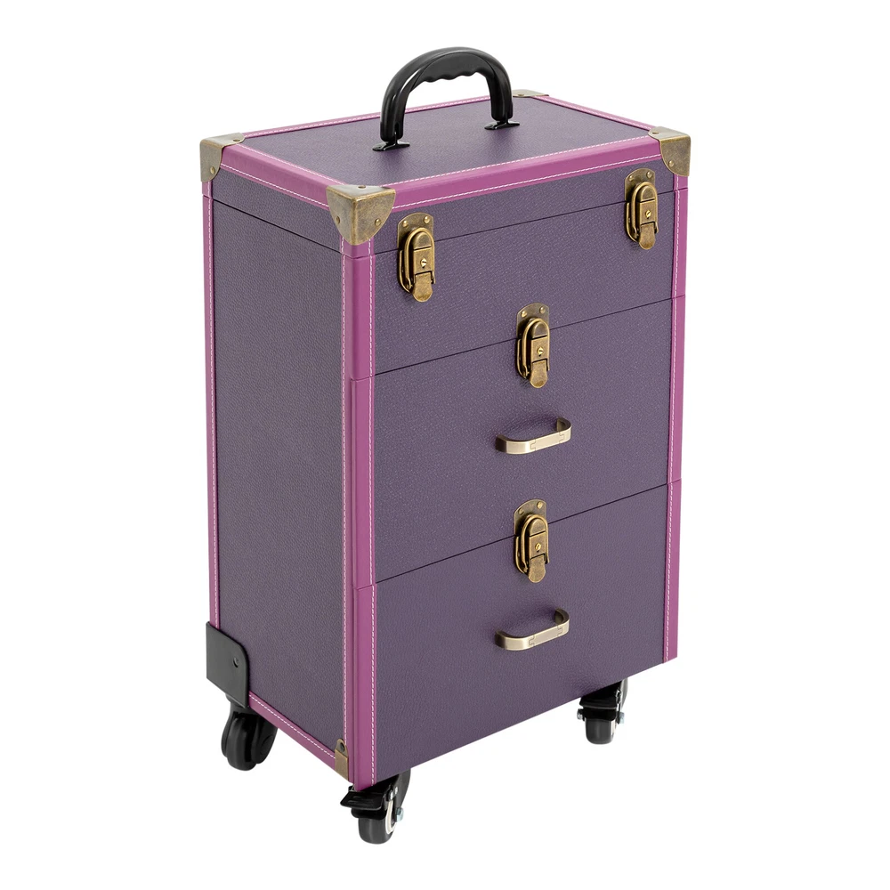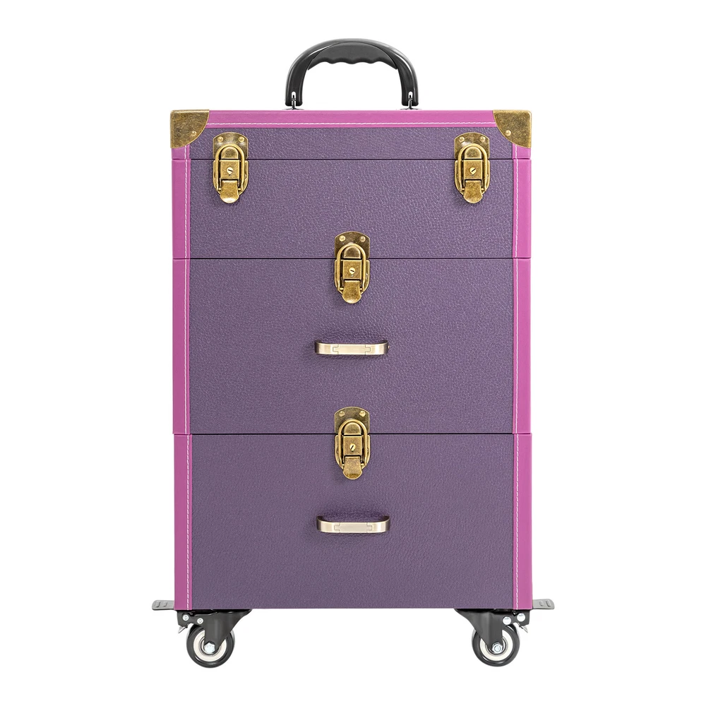 Portable Makeup Train Case Professional Cosmetic Trolley Travel Vanity Organizer Makeup Train Case, Rolling Makeup Trolley Case, Nail Polish Organizer, Jewelry Travel Cosmetic Train Case w/ 4 Wheels, Purple Description If you are troubled by storing all your hairdressing tools in order and finding them easily, our makeup train case can be of great help to you. Featuring high durability, attractive appearance, large capacity, universal wheels, humanized handles, a telescopic rod, and more, this product is easy to carry outside while keeping practical and beautiful. It is an ideal choice for young manicurists, make-up artists, and hairdressers/cosmetics lovers to store various cosmetics. Application It is good for manicurists, makeup artists, both beginner and professional, freelance makeup artists, wedding makeup artists, celebrity makeup artist, and cosmetic trainees. Specification Target Audience: Unisex Adult Caster Type: Swivel Mounting Type: Free Standing Material: PU, PVC, Zinc Alloy, Aluminum Alloy Color: Purple Shape: Rectangular Number of Tiers: 3 Number of Wheels: 4 Max. Load-bearing Capacity: 40kg/88.2lbs Number of Keys: 2 Lid Size: 36*23cm/14.2*9inch Wheel Height: 7cm/2.8inch Telescopic Rod Length (Min.): 38cm/14.9inch Telescopic Rod Length (Max.): 86cm/33.8inch Second Tier Inside Size: 30*19.5*13.5cm/11.8*7.7*5.3inch Each Compartment of Top Tier Size(L*W): 3.5*3.5cm/1.4*1.4inch Each Compartment of Third Tier Size: 14.5*19*13.5cm/5.7*7.5*5.3inch Top Tier Height: 9cm/3.5inch Second&Third Tier Height: 17cm/6.7inch Overall Case Body Size: 36*23*49cm/14.2*9*19.3inch Overall Product Size: 36*23*101cm/14.2*9*39.76inch Package Size: 63*32*41cm/ 24.8*12.6*16.14inch Gross Weight: 10kg/22.04 lbs Product Weight: 9kg/19.84 lbs Key Features Beautiful Appearance: Elegant p urple color combined with a rectangular frame, smooth lines, and delicate lychee texture gives this product a stylish and beautiful look. High-quality bronze hardware and exquisite stitching also add to its appearance. Durable and Sturdy: This product is constructed with premium PU, PVC, and reinforced corners, aluminum alloy rod, zinc alloy-wrapped edge , which is waterproof, wear-resistant , and has a long service life. Categorized Storage : The 3-tier and compartment designs, cubicles, and a large clear pocket on the lid give this case a large capacity to hold your daily cosmetics and makeup tools in a categorized way, allowing you to quickly find what you want. And the dividers are removable for organizing different sized bottles. Easy to Move&Carry: 4 universal wheels (2 of which are lockable) ensure that the case can be moved smoothly and silently in all directions and allow for safe fixation to handle different road conditions. The telescopic handle and top handle give it high portability. Easy to Clean: The lid and drawer designs can prevent dust from entering, along with the waterproof surface, making it easy to clean. You just need to wipe off the dirt with a wet cloth. High Safety: The 4 latch locks and waterproof surface provide maximum protection and security for your toiletries, giving you peace of mind while traveling. Excellent Load-bearing Capacity: The sturdy construction and the zinc alloy frame provide the product with an excellent weight-bearing capacity of 88.2 lbs. You can place all kinds of hairdressing and beauty tools in it with confidence. Protective Packaging: To prevent the product from being damaged and bumped during transportation, we pack it with pearl cotton for maximum protection of your products. After-sales Service : We aim to provide quality products and services. If you have any problems, please feel free to contact us, and we will reply and solv e the problem for you as soon as possible. Details Back Buckles: The back of the luggage has two hardware eight-nail back buckles to make the case more stable and to ensure that it remains as good as new when repeatedly opened and closed. User-friendly Drawer Handle: The 2 comfortable drawer handles of the second and third tiers allow for convenient closing/opening of the drawers, thus ensuring easy access to the inside items. Structure Overview The inside of the lid has a makeup bag where you can keep the things you use regularly for quick and easy access. The first tier can be used for nail varnish or other small items. The second tier is suitable for larger items such as hair dryers, curling wands, nail art machines, and more. The third tier has two compartments for medium items, such as cosmetics, hairspray spray. Package Included 1*Makeup Train Case 2*Keys Notes Please note that cosmetics or makeup tools are not included. This product is a carry case only. This product includes two keys. Please allow the slight color difference caused by the shooting light and 1-3 cm error due to manual measurement, and make sure you do not mind before ordering. Payment Delivery details Terms of sales About us Contact us Payment We accept ebay payment 。 Fees such as import duties, taxes are not included in the item price or shipping costs. These charges are the buyer's responsibility. Delivery details Shipping: 2-9 working days to: USA Terms of sales We maintain high standards of excellence and strive for hundred percent customer satisfaction. Feedback is very important to us. We hope that you contact us immediately before you give neutral or negative feedback, so that we can address your concerns. It is impossible to address issues if we do not know about them! About us Your satis faction is our ultimate goal. We work hard to earn your trust and future business. Our certified technicians have tested each item before shipping. The unit comes with 1 year limited warranty on all manufacturing defects. a) If you receive a defective item, you may return it or ask for a discount. Please contact us within 14 days after you receive the package. b) What you returned must be intact and in its original packaging as re? u. Customer is responsible for shipping cos