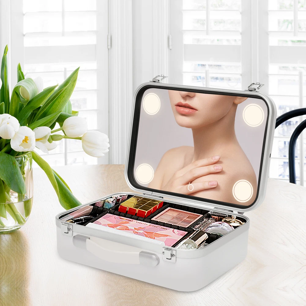 Application This product is suitable for storing cosmetics and skin care products, as well as jewelry, such as necklaces and earrings. Specifications Material: Aluminum, Sponge Color: White Battery Capacity: 2000mAh Led Light: Warm Yellow Light 6500k, Natural Light 4600k, Cool White Light 3500k Product Size: 34*24*12cm/13.4*9.4*4.7inch Net Weight: 1.6kg/3.52lbs Gross Weight: 1.8kg/3.97lbs Package Size: 38.6*30.5*16.20cm/15.2*12.01*6.38inch Package Included 1*Cosmetic Box 1*Data Cable 1*Brush Plate Notes Please allow the slight color difference caused by the shooting light and 1-3cm error due to manual measurement, and make sure you do not mind before you order. Portable Makeup Train Storage Travel Case Cosmetic Box w/ LED Light Mirror New Makeup Case w/Dimmable LED Bulbs and Tilt Mirror Lighted Cosmetics Organizer Case Specifications Material: Aluminum, Sponge Color: White Battery Capacity: 2000mAh Led Light: Warm Yellow Light 6500k, Natural Light 4600k, Cool White Light 3500k Product Size: 34*24*12cm/13.4*9.4*4.7inch Net Weight: 1.6kg/3.52lbs Gross Weight: 1.8kg/3.97lbs Package Size: 38.6*30.5*16.20cm/15.2*12.01*6.38inch Package Included 1*Cosmetic Box 1*Data Cable 1*Brush Plate Application This product is suitable for storing cosmetics and skin care products, as well as jewelry, such as necklaces and earrings. Notes Please allow the slight color difference caused by the shooting light and 1-3cm error due to manual measurement, and make sure you do not mind before you order. Description People’s pursuit of beauty is endless, and a good product often enhances people’s feelings. This cosmetic box is made of aluminum, which is durable and easy to carry. In addition, the compartmented storage space and the buckle allow items to be placed more securely. Warm color and unique design bring people a good mood for the day. With it, you can enjoy the make-up process to your heart's content. Key Features Premium Material: The product is made of aluminum, which is strong and durable, can be used for a long time, and has a good guarantee of quality. Thoughtful Design: The product comes with a mirror and dimmable LED lights by touching the switch. Long press to adjust the light brightness and short touch to adjust the light color temperature. Meet the needs of different scenes and provide a better makeup process. Easy to use: The built-in 2000 mAh high-capacity battery has a long life span. The included type-c charging cable is compatible with many charging devices. Dual use of battery and plug-in power makes it easy to move around. Safe to Use: The display at the switch button is red when charging and turns green when fully charged. The built-in charge protection system can automatically limit the current after a full charge to avoid overcharging. Fully Featured: The product can not only make up but also meet people’s needs to reapply at any time. It can store cosmetics and skin care products. The equipped lamp can also provide emergency lighting to realize the multi-purpose use of one object. Large Capacity: The cosmetic box has a large storage space, which can accommodate cosmetics and some skincare products at the same time to avoid disorderly items. Real Experience: The cosmetic box has a built-in high-definition large mirror, equipped with a three-color LED light source to restore the real makeup, pay more attention to details, and bring people a more natural and real experience. Ideal Gift: A practical and beautiful cosmetic box is something that every girl who pursues beauty will love. It is a wonderful gift for girlfriends, family members and colleagues. Professional Service: Adhering to the purpose of making everyone beautiful, we will always listen to customers’ opinions and lay a solid foundation for providing good service. Details Support Feet: The bottom of this item has support feet that not only make it stand more stable but also prevent item wear and tear caused by direct contact with the floor. Lock Buckle: The buckle keeps the same color as the cosmetic case not only looks fantastic but also keeps the case locked up to prevent cosmetics from falling out. Telescopic Handle: The handle adopts an artificial design to reduce the burden of the opponent and reduce fatigue, and it’s also convenient to carry. Partition: It can freely adjust the position of the partition according to the volume and shape of its own cosmetics, and keep the internal cosmetics in order at all times. Movable Brush Plate: The removable brush board is equipped to place cosmetic brushes and other items separately to ensure neatness and protect the mirror at the same time. Payment Delivery details Terms of sales About us Contact us Payment We accept ebay payment 。 Fees such as import duties, taxes are not included in the item price or shipping costs. These charges are the buyer's responsibility. Delivery details Shipping: 2-9 working days to: USA Terms of sales We maintain high standards of excellence and strive for hundred percent customer satisfaction. Feedback is very important to us. We hope that you contact us immediately before you give neutral or negative feedback, so that we can address your concerns. It is impossible to address issues if we do not know about them! About us Your satis faction is our ultimate goal. We work hard to earn your trust and future business. Our certified technicians have tested each item before shipping. The unit comes with 1 year limited warranty on all manufacturing defects. a) If you receive a defective item, you may return it or ask for a discount. Please contact us within 14 days after you receive the package. b) What you returned must be intact and in its original packaging as re? u. Customer is responsible for shipping costs of the returned item. c) We will cover the cost of shipping back t with the shipping rate indicated in the registration page. We will send you a new unit or refund the full payment you paid. Thank you. Contact us Business Hour Business Hour: 