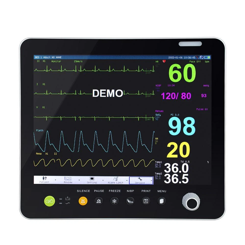 Description: Introducing our 15 High-Resolution Color TFT LCD Portable Patient Monitor, designed for easy and convenient operation in various medical settings. This Multi-Parameter Signs Monitor features a modular design that allows flexible configuration to meet the specific needs of different departments. With support for up to 16 languages, it aids diverse user environments. Key functions include drug solubility calculations and arrhythmia analysis. It seamlessly connects to central monitoring systems via wired or wireless networks and includes a built-in lithium battery for reliable-term monitoring during power outages. Ideal for internal medicine, dental practices, surgery centers, obstetrics, pediatrics, emergency care, ICU, and CCU. Upgrade your patient monitoring today! Portable Multi-parameter Patient Monitor is adaptable to adult, pediatric and neonatal usage. It can monitor signals as ECG, Respiratory Rate, SpO2, NIBP, TEMP and IBP.Monitored date can be displayed, reviewed, stored and printed. Standard parameters :ECG, RESP, NIBP, SPO2, TEMP, PR. Optional :Dual IBP , CO2 , CSM module , Gas Specifications: ECG Lead Mode:5 Leads ( R, L, F, N, C or RA, LA, LL, RL,V) Lead selection:I, II, III, avR, avL, avF, V, Waveform:2 ch Lead mode:3 Leads ( R, L, F or RA, LA, LL) Lead selection:I, II, III, Waveform:1 ch Gain:´2.5mm/mV, ´5.0mm/mV, ´10mm/mV, ´20mm/mV, auto HR and Alarm Range: Adult:15 ~ 300 bpm Neo/Ped:15 ~ 350 bpm Accuracy:± 1% or ± 1bpm,which great Resolution:1 bpm Sensitivity:> 200 (uV P-P) Differential Input Impedance:> 5 MΩ RESPARATION: Method:Impedance between R-F(RA-LL) Differential Input Impedance:>2.5 MΩ Measuring Impedance Range:0.3~5.0Ω Base line Impedance Range:0 – 2.5 KΩ Bandwidth:0.3 ~ 2.5 Hz Resp. Rate Measuring and Alarm Range Adult:0 ~ 120 rpm Neo/Ped:0 ~ 150 rpm Resolution:1 rpm Accuracy:±2 rpm Apean Alarm:10 ~ 40 S NIBP Method:Oscillometric Mode:Manual, Auto, STAT Measuring Interval in AUTO Mode 1, 2, 3, 4, 5, 10, 15, 30, 60, 90, 120, 180, 240,480 (Min) Measuring Period in STAT Mode:5 Min Pulse Rate Range:40 ~ 240 bpm Alarm Type:SYS, DIA, MEAN Measuring and alarm range: Adult Mode SYS :40 ~ 270 mmHg DIA :10 ~ 215 mmHg MEAN:20 ~ 235 mmHg Pediatric Mode SYS:40 ~ 200 mmHg DIA:10 ~ 150 mmHg MEAN:20 ~ 165 mmHg Neonatal Mode SYS:40 ~ 135 mmHg DIA:10 ~ 100 mmHg MEAN:20 ~ 110 mmHg Overpressure Adult Mode:297±3 mmHg Pediatric Mode:240±3 mmHg Neonatal Mode:147±3 mmHg SpO2 Measuring Range:0 ~ 100 % Alarm Range:0 ~ 100 % Resolution:1 % Accuracy: 70% ~ ±2 % 0% ~ 69% unspecified Actualization interval:about 1 Sec. Alarm Delay:10 Sec. Pulse Rate Measuring and Alarm Range:0~254bpm Resolution:1bpm Accuracy:±2bpm I.5TEMP measurement: Channel:1 Measuring and Alarm Range:0 ~ 50 °C Resolution:0.1°C Accuracy:±0.1°C Actualization interval:about 1 Sec. Average Constant:< 10 Sec. Package List: 1×Patient Monitor 1×EKG Lead wire 1×NIBP Cuff 1×NIBP Extension Cable 1×SpO2 Sensor 1×Temp Sensor 1×Ground Cable 5×Electrode 1×User Manual FDA declaration : Statement:The sale of this item may be subject to regulation by the U.S. Food and Drug Administration and state and local regulatory agencies. If so, do not bid on this item unless you are an authorized purchaser.If the item is subject to FDA regulation, we will verify your status as an authorized purchaser of this item before shipping of the item.(Seller Name: Sara;Country: China;City: Beijing;TEL.:86-15210656055). This item has been cleaned and treated according to the manufacturer's instructions. The Powered Surgical Instrument / Speed 808 System is certified with the US FDA 510(k) Number:K132989 The Powered Surgical Instrument / Hair Remove Device is certified with the US FDA 510(k) Number:K180353 The Powered Surgical Instrument / Hair Remove System is certified with the US FDA 510(k) Number:K141973 massager, vacuum, light induced heating / Slimming Treatment Device is certified with the US FDA 510(k) Number:K161892 Ultrasound ,Ultrasonic Treatment Device is certified with the US FDA 510(k) Number:K161892
