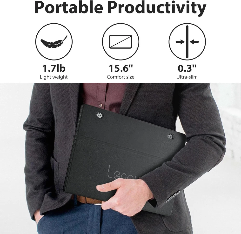 [Full HD Portable Monitor ] 15.6inch portable laptop monitor with 1920*1080 resolution delivers a truly immersive viewing experience that lets you enjoy High-Definition entertainment and gaming. The 15.6-inch Full HD IPS portable screen offers a 178°Full viewing angle and Eye Care technology that keeps your eyes from getting tired during prolonged use [Extensive Compatibility & Plug & Play] portable monitor features 2 full-featured Type-C ports and 1 MINI HDMI port.HDMI & USB C ports design makes this portable gaming monitor more convenient to connect your laptop, smartphone, PC, PS3, PS4, XBOX ONE, or Nintendo Switch etc. portable computer monitor is ideal for extending your screen or playing games on business trips, travel, or home entertainment. Without battery, No WiFi, You can also connect the screen extender to your device by HDMI cable with power cable(included) [Lightweight Ultra Slim for Travel ] With a slim 0.3-inch profile and just 1.76 pounds, 15.6 inch portable external monitor is ideal for your life, work, or travel to make a simple setup on-the-go dual-monitor and mobile presentations [Stand Cover ] has added a smart cover to fully protect our monitor. The cover case of this portable screen is made of PU leather to provide excellent protection for the entire monitor and can be folded into different positions to create a stand(Note:portable monitor comes with a built-in screen protector directly from the factory. Therefore, no additional screen protector is provided with the package) [Dual Speakers & HDR Mode ] 2 built-in speakers in the computer monitor efficiently helps display multi-media files especially when listen to music/watch movies/play games. HDR mode support excellent mainstream transmission so that you can enjoy great video transmission in game and other entertainment